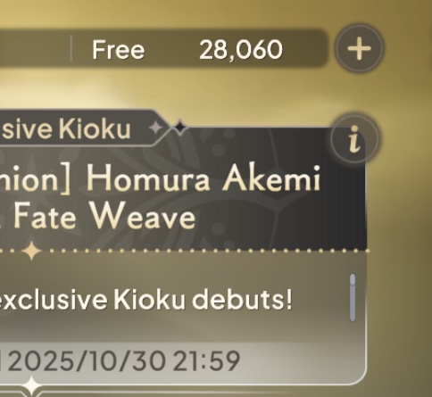 >>54252781822. Limited Time Match Medal Trader Reward Increase23. Limited Time Archive Medal Trader Reward Increase30/9 21:00 UTC – 31/10 20:59 UTC24. Dollhouse (see above)(Early October)26. Tower Reward Increase27. Limited Time Tower Mission3/10 04:00 – 17/10 03:59 UTC28. Half Anniversary Login Bonus (3000 total)8/10 21:00 – 31/10 03:59 UTC29. Wraith Arc Link Raid30. Limited-Time Link Raid Trader Reward Increase9/10 04:00 – 23/10 03:59 UTC>Upcoming Event31. Movie to TV Bloat Fate Weave(12/10 - )32. Magia Record: Crescent Moon(Late October)>EventTower (2/10 13:00 – 16/10 12:59 UTC)Link Raid Season 4 vs Kriemhild Fausut (8/10 13:00 – 22/10 12:59 UTC)A Taste of Hospitality (8/10 13:00 – 22/10 12:59 UTC)Score Attack vs Uwasa of the Commoner’s Horse>Gacha>Mitama Fate Weave (8/10 13:00 – 22/10 12:59 UTC)5* Mitama (Structure Destruction)Half-Anniversary>Bowmura Fate Weave w Step-up (28/9 12:00- 31/10 03:59 UTC)5* Bowmura (Dark Art Dominion)Step-Up5* Bowmura (Dark Art Dominion)5* Ui (Luce della Speranza)5* Sakurako (A Tale of Cherry Blossoms)>Free 100x Rolls28/9 21:00 UTC – 31/10 03:59 UTC>Free 10x Roll30/9 04:00 UTC – 10/1 03:59 UTC>Upcoming GachaMovie to TV-edition Fate Weave11/10 16:00 UTC – 10/1 03:59 UTC