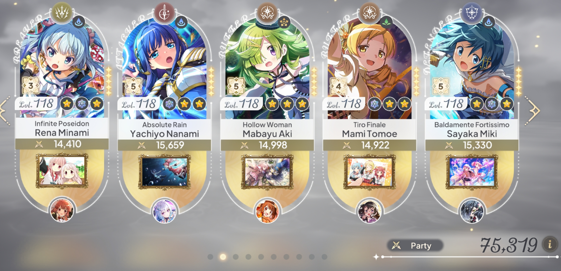 >>542960378Looks very solid. Missing a 5* defender but it's not mandatory in the early game,4* Kokoro is good enough when needed.