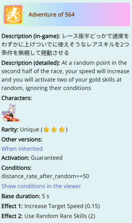 >>542581949Thanks, kinda what I expected.Can't wait until we get scenarios/cards to buy more skills, building umas with lots of skills should be more fun that what we have now.