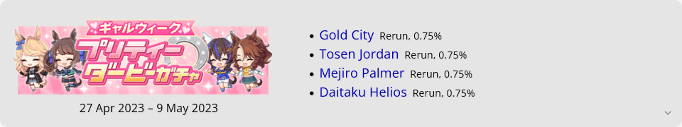 >>542581087im in a similar situation but i don't have that much of a problem since most of the umas i want i can get them later, and basically all the ones i want i already have