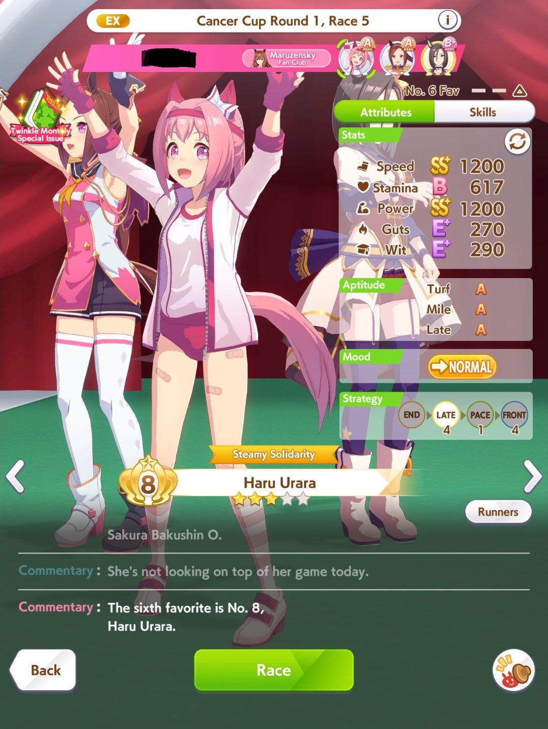 Late start 4 races in a row on my concentration-having Seiun I'm gonna freak out man>>542581196No, the URA spark remains the best parent spark up until where JP is today, new scenarios sparks tend to give racecourse hints or raise less important stats. It's easier to built parents for that scenario because of the new mechanic + higher caps though.
