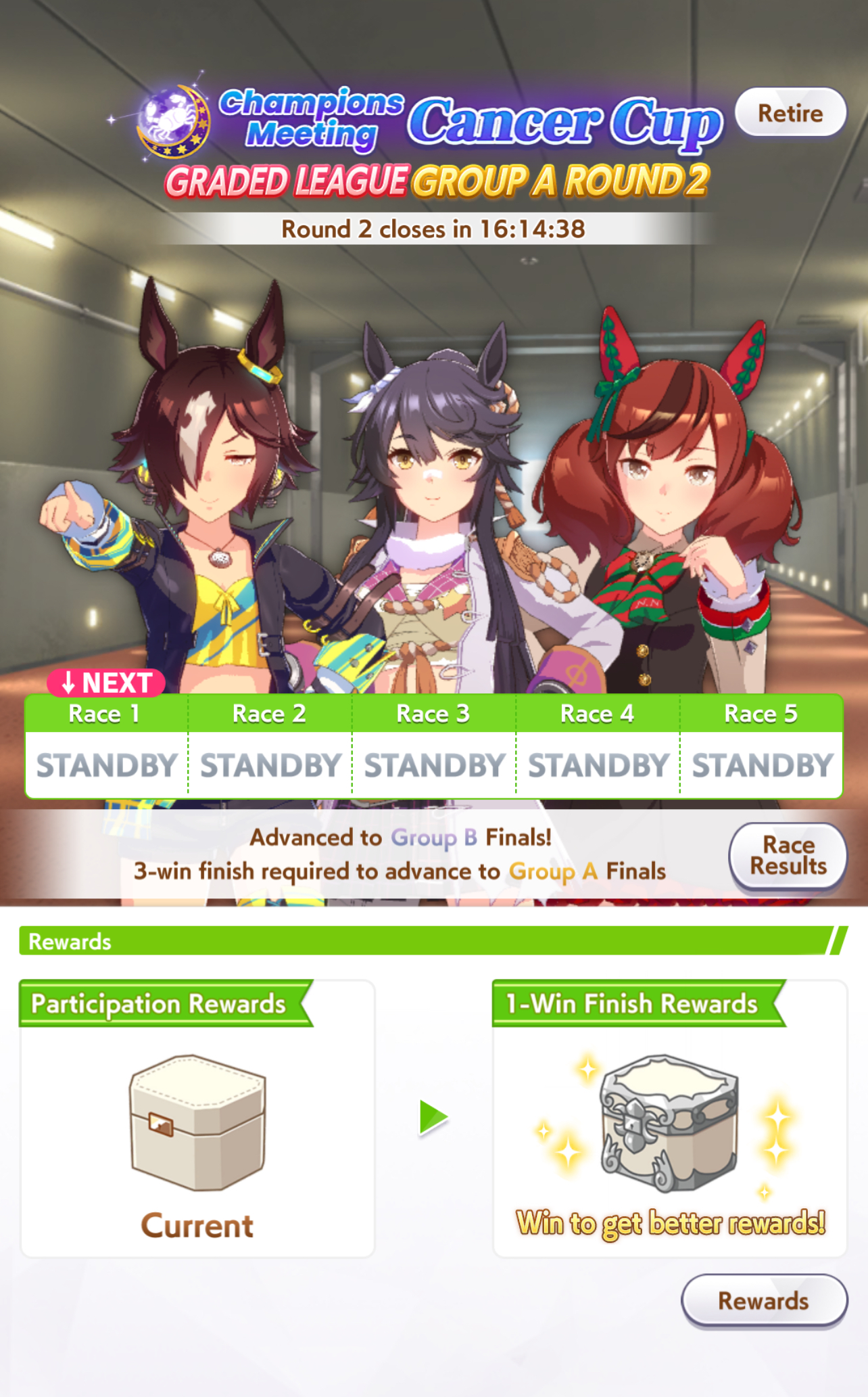 >Got 2 wins in Group A with my slapdash team>Final race of my final try>ROBBED by Air Groove by a nose>my Vodka and Seiun came in second and third