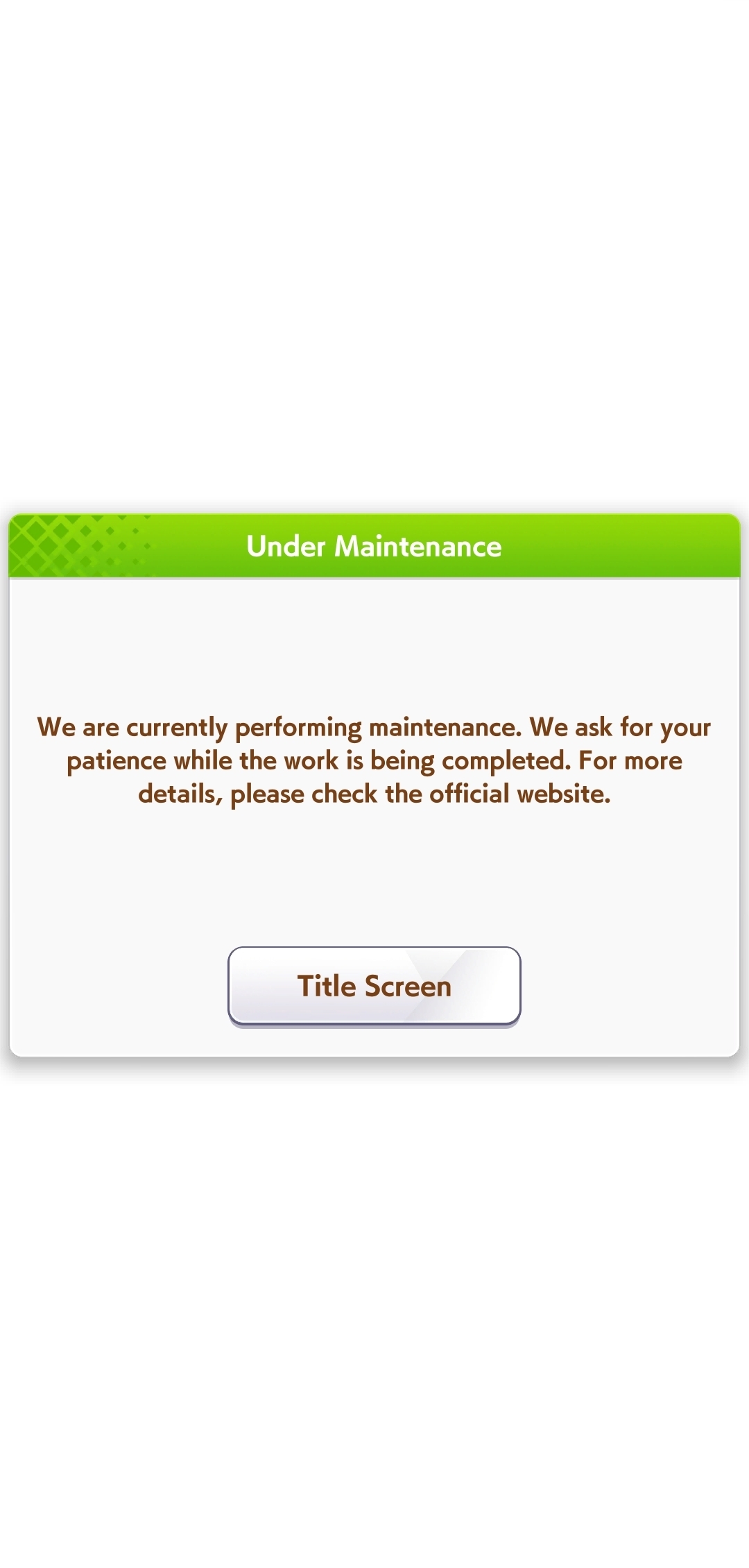 Stop the maintenance I need to play
