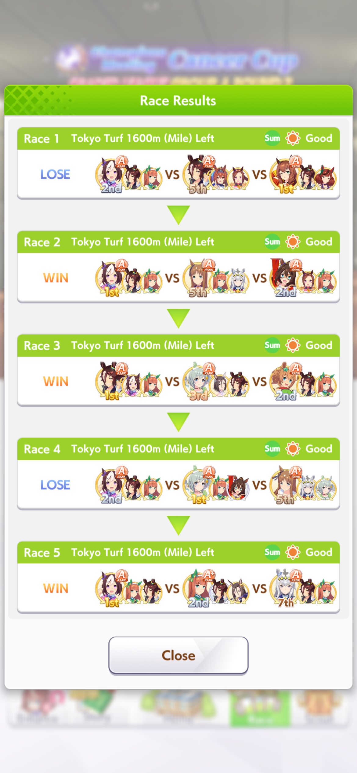 >>542587294Heh, I'm pulling for her and just hoping I get maruzensky spooked.