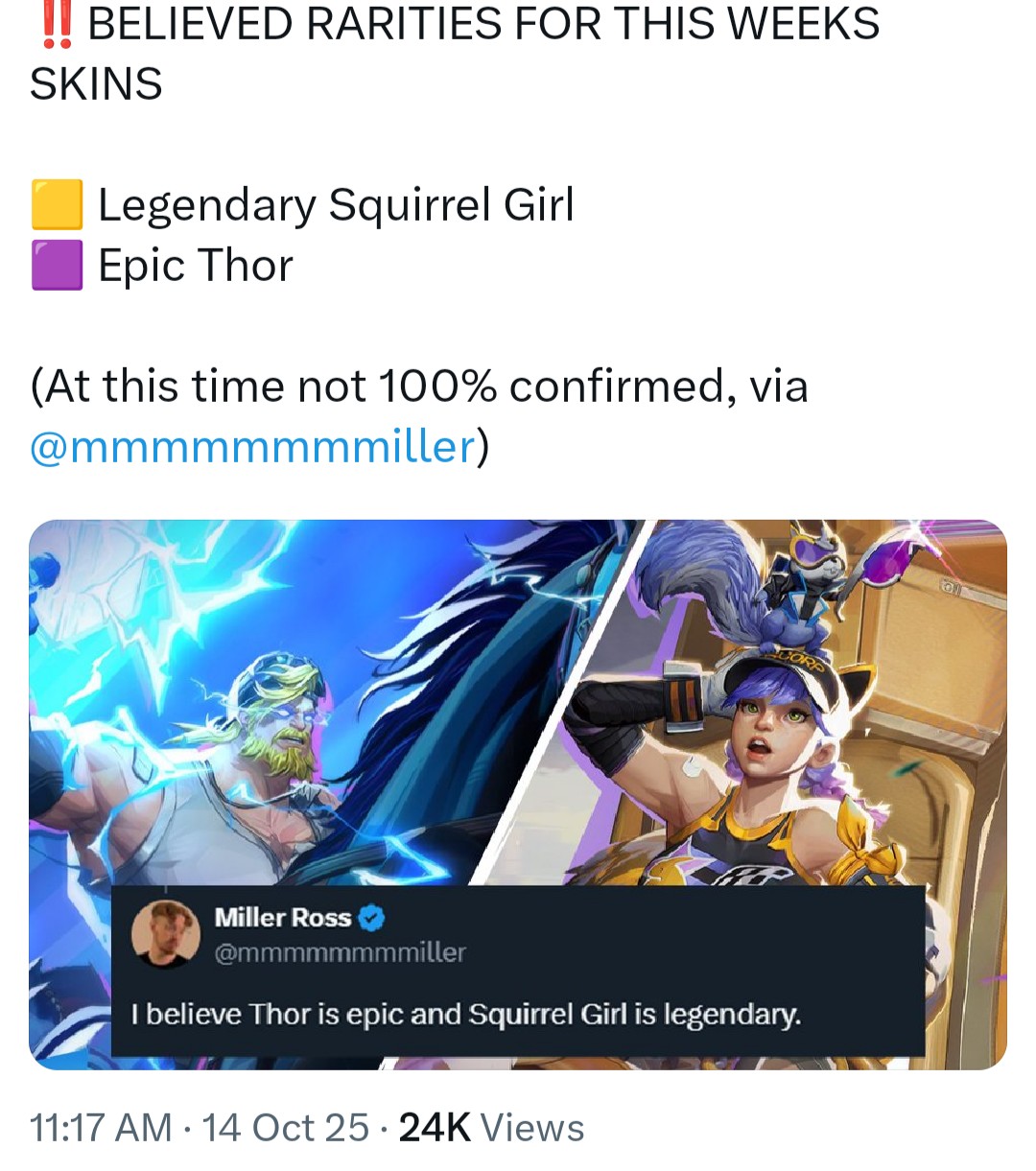 Maybe the first good Squirrel Girl skin coming this week. Too bad she sucks and was nerfed for no good reason.