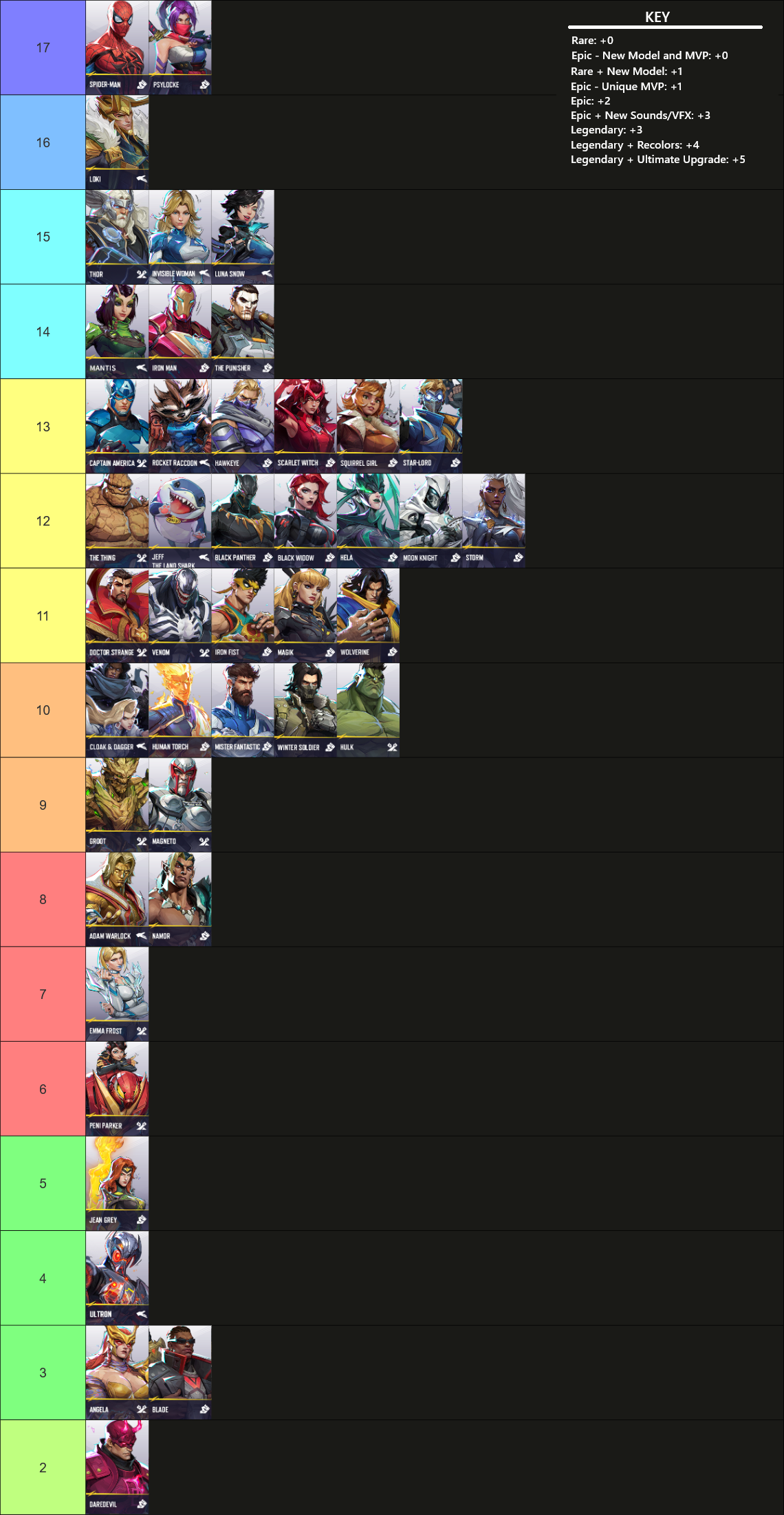 >>542711676The fuck kind of ranking is this? Just count the individual number of skins they have instead of assigning arbitrary scores