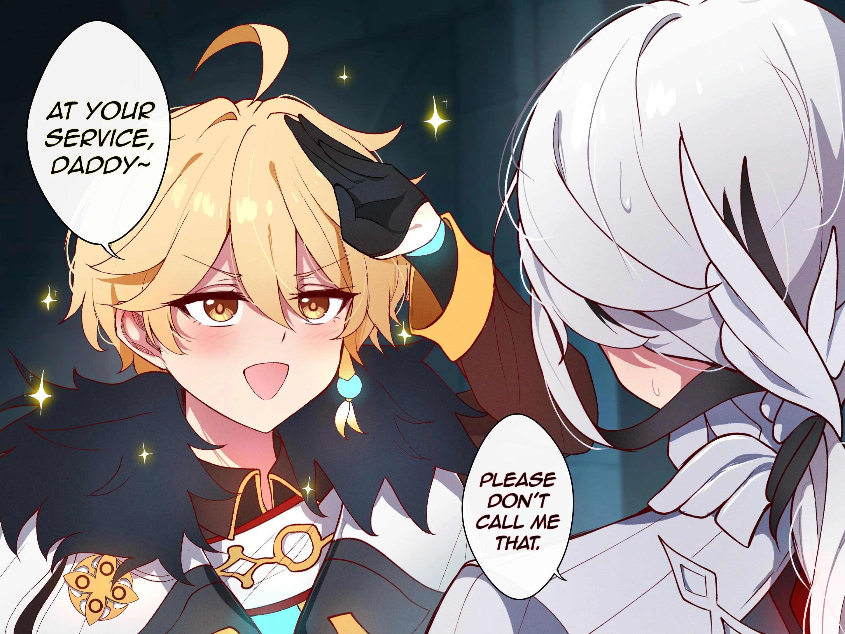 [Scene: Fontaine palace kitchen. Aether stirs something suspicious in a pot. Escoffier watches, arms folded, clearly unimpressed. The smell is… questionable.]Aether: There! I made pagpag! It’s kind of a street survival food. Taught myself after a tough journey—Furina: enters, halts with a hand over her mouthA-Aether... I don’t think that pagpag dish looks appetising.Inner Furina: ESCOFFIER PLEASE HELP!!Escoffier: steps forward, absolutely lividMon dieu, what culinary crime have you committed in my kitchen?! Pagpag?! This is not a wasteland, garçon—this is Fontaine! No Frenchman, no citizen of culture, would touch that with a fork! We are not here for cultural enrichment, we are here to cook!Aether: startled, hands up in surrenderI-I’m sorry! I didn’t mean to disrespect the kitchen… or anyone here! I promise—I'll never serve pagpag to Furina ever again!Furina: regaining composure, arms crossedSee that you don’t. This is a palace, not a slum![Later — Neuvillette’s chambers. Escoffier speaks with quiet fury.]Escoffier: He served Her Eminence pagpag. Scraps, reheated! A dish of ruin, not refinement.Neuvillette: coldly Then justice must be served.[Exterior. Rain falls as Aether stands near a carriage.]Neuvillette: Aether, by the laws of this land and the dignity of our nation, you are to be deported from Fontaine.Aether: sighing I didn’t think food could get me banished…Paimon: [teary-eyed] I.. I’ll stay in Fontaine... someone has to make sure no one eats anything worse!