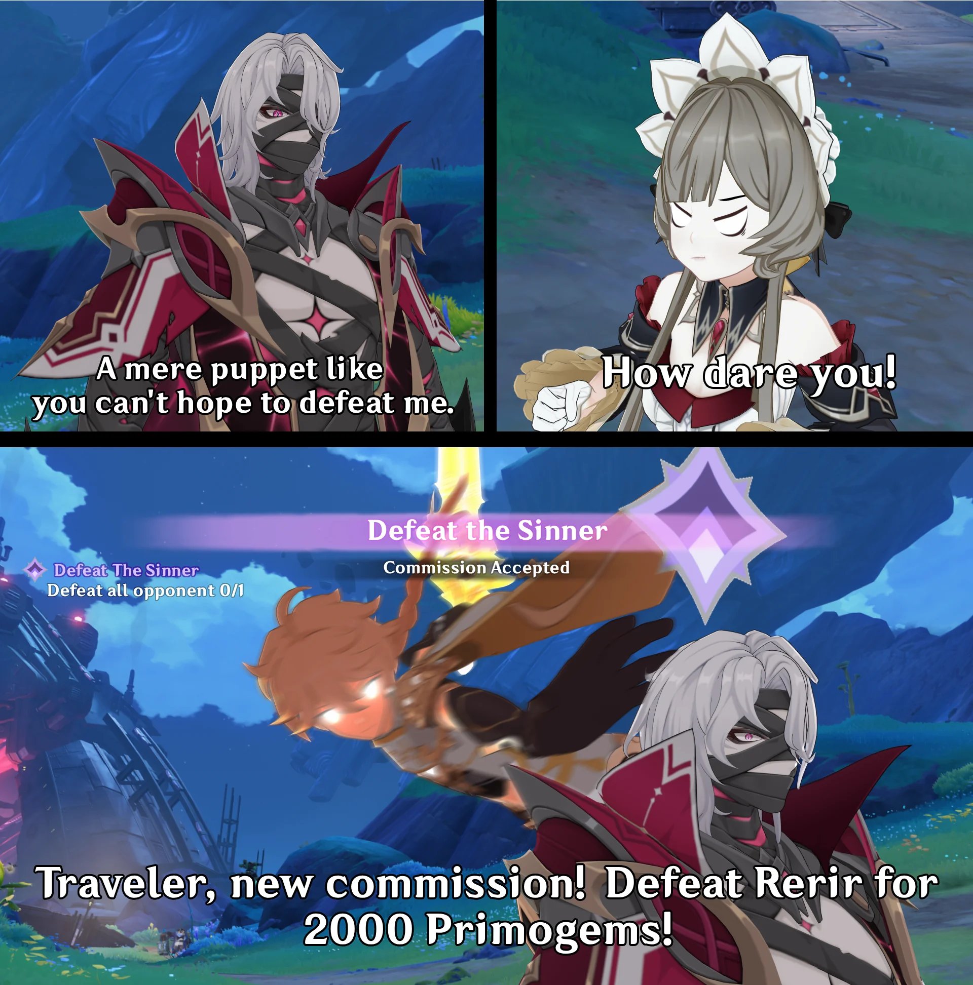 Here us a questionSo I've been thinking. If Renova is the only one who can remove the curse of imortalety from the people of khaenri'ah, can't she like just do it kill the 5 sinners of khaenri'ah, besides Rhinedottir and place the curse of imortalery back on them? Like since Rerir is one of the 5 sinners then there is no way for our gang of Teaveler, Paimon, Lauma, Nefer, Flins, Varka, Alice, Durin, Nicole, Jehoda, Ineffa, Aino, Columbina and Sandrone (P.s. i havent seen the Lune II updates, but i did hear something about Arlecchino joining their side I think (P.s.s. Dottore can go join Segnora) to defeat him. Usless a 3rd party helps them like the Heavenly Princepals, the Shades of the Heavenly Princepals, the rest of the Hexenzirkel, all the archons (+ The Tsaritsa), the Abyss meaby and take that with as much sult as you want. So please can someone help me get all of thise theorys and speculations out of my sistem.