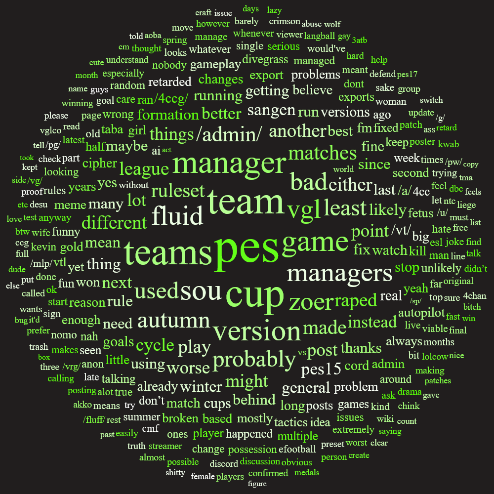 i just watched the NTC4 vods after missing it last weekend>/pg/ played really well, perhaps taba will retire soon>/gig/ and /zzz/ were pretty unimpressive lang ball merchants>/hgg2d/ played alright but theres tons of room for improvement>/hdg/ went from "it's so fucking over" to "we're so fucking back", so i assume the manager improved>/civ4xg/ looked underwhelming, my expectations were shattered about this team, they looked good in friendlies>/fng/ played a pretty competitive game vs /1999/ but vs /hdg/ i think they panic changed and accidentally started digging the grave deeper with the changes until they figured out that the opponent is playing possession ball, and then started playing like they should have from the start>/1999/s wide attack vs /fng/ was alright, they are a pretty exposed 3atb, good choice from the /1999/ manager, however they just "forgot" to update their nightly export and happen to dunk 4 goals against /civ4xg/, i dont know if this is just /civ4xg/ being dogwater or /1999/ being lucky with the /vrg/ strikers, but no "learning" was made and therefore it was a bad game (i'm not just saying it because i'm salty about /civ4xg/ being bad)