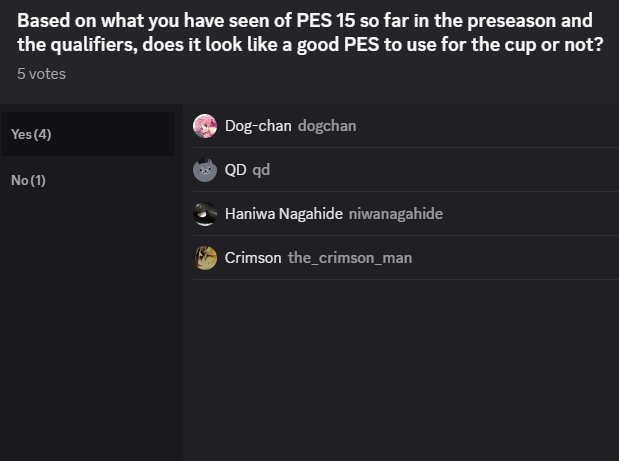>PES 15 now losing in the pollKWAB