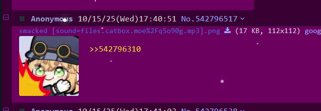 >>542796771https://greasyfork.org/en/scripts/31045-4chan-external-sounds