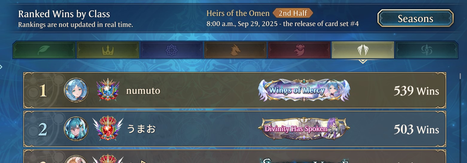 >News4th Card Set Announcement!https://www.youtube.com/live/Dlvj3cDPxPoUmamusume: Pretty Derby Mini-Collab!https://shadowverse-wb.com/en/news/detail/?id=01K4M3WA216QY2MZ2QEH8SSJM0Evolving Guild Chest Event! OPEN YOUR CHESTS NOW!!!!https://shadowverse-wb.com/en/news/detail/?id=01K5QPVPN5XJ54J75FMFBN0QPWBattle Dungeon!https://shadowverse-wb.com/en/news/detail/?id=01K5EEYCTPCC9VXSEX5AV5ESWB>3rd Card Set: Heirs of the Omenhttps://www.youtube.com/watch?v=SywGqmiBFHMhttps://shadowverse-wb.com/en/cards/pack/heirs-of-the-omen/>Gacha Leaders: Galmieux and Sincirohttps://www.youtube.com/watch?v=_whdcQjzZOkhttps://www.youtube.com/watch?v=DfGx1xUpHRk>Battle Pass Leader: Elhttps://youtu.be/OTel7n5i060>Umamusume: Pretty Derby Mini-Collab Trailerhttps://www.youtube.com/watch?v=0mi9KOEauP0>Resource Guide (decks, tier lists, guilds)https://rentry.org/svg-resourcesOfficial website & deck portalhttps://shadowverse-wb.com/en/https://shadowverse-wb.com/en/deck/Shadowverse Animehttps://anime.shadowverse.jpShadowverse Evolve TCGhttps://en.shadowverse-evolve.com//svg/'s card & leader database and deckbuilder (classic)https://svgdb.meShadowverse: World's Beyond Card Databasehttps://mhmkhlrdn.github.io/WBGDB/SiteLast Showdown: >>542565651