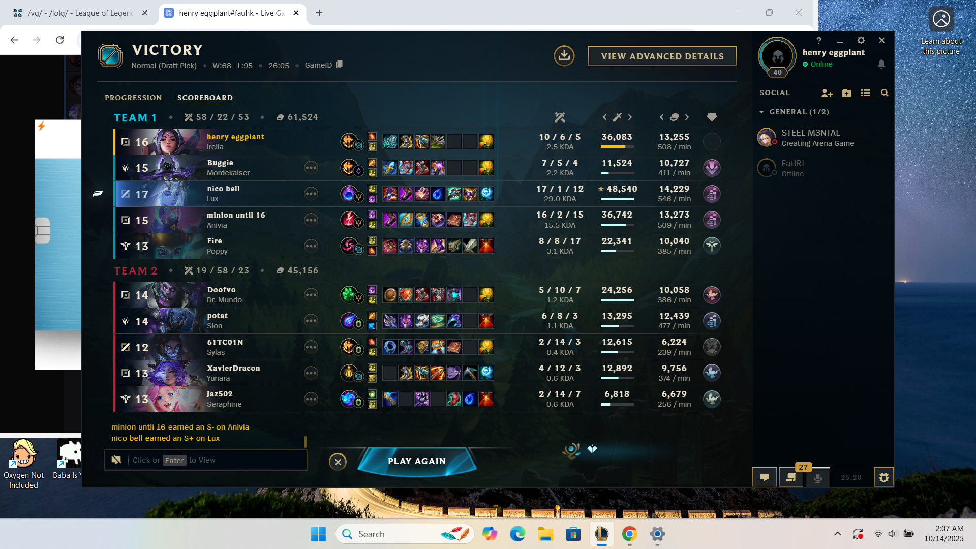 >>542690247umm... you didn't see... i'm literally in game spectating... refer to opgg if you're not sure what i mean...