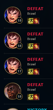 >>542731902I spammed Garen games just to get used to the idea of fighters. Now I'm going to learn all the fighters in order 3 games each.I'm not even level 30 and each game takes 30m that's no place to learn fast what all champions do.Brawl is the best mode for that. I do not play to win, just play to learn what every single champ does.On this is done I'll select a role, three champions I like and only play ranked ofc.
