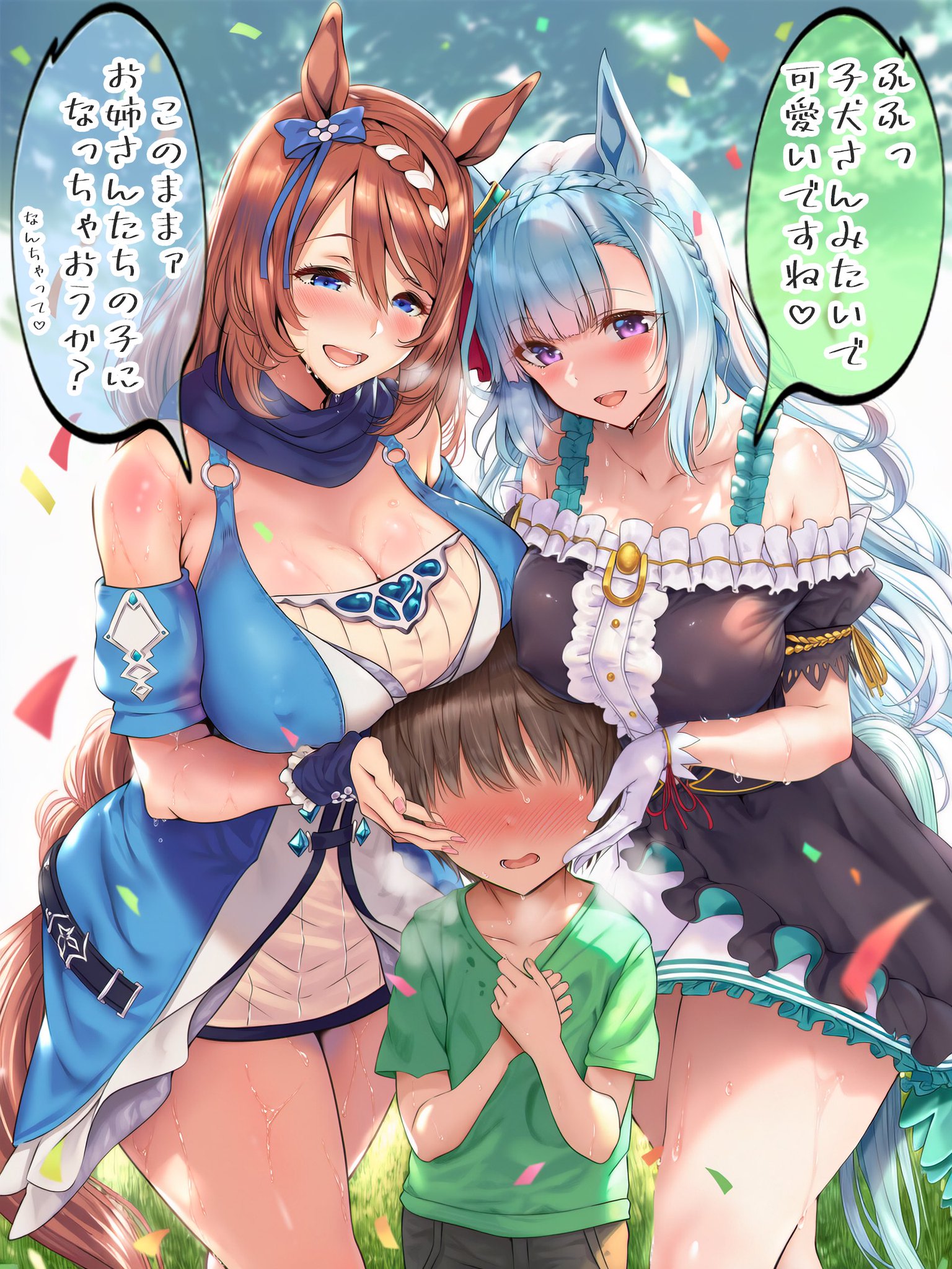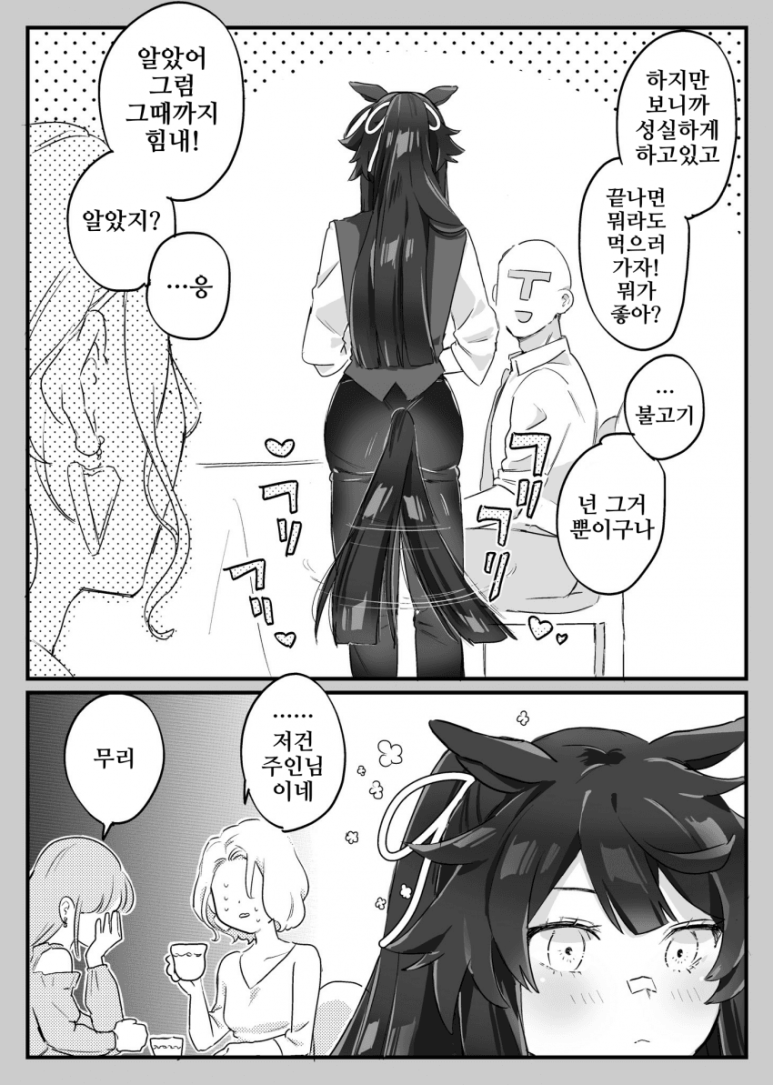 sniffing Grass Wonder's big sweaty butt that can't fit into her bloomerssniffing Tazuna's large sweet smelling butt as she settles in at Tracen