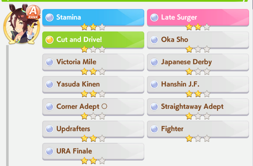 >>542721501Midrace skills doesn't feel too important for medium, compared to mile at least.