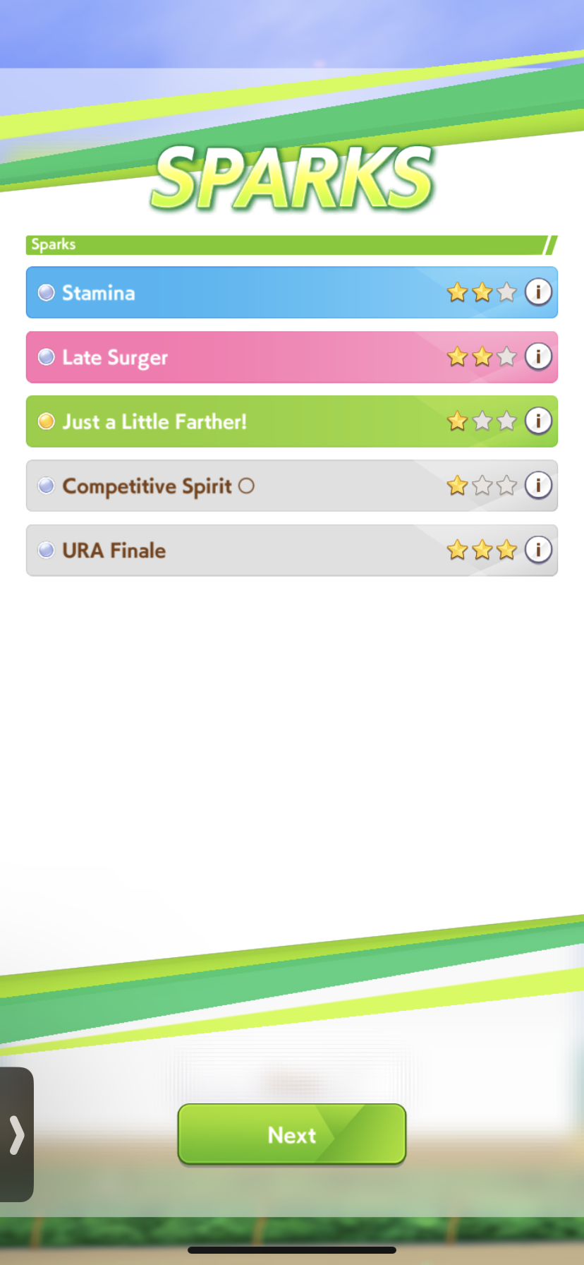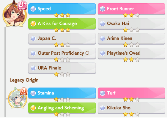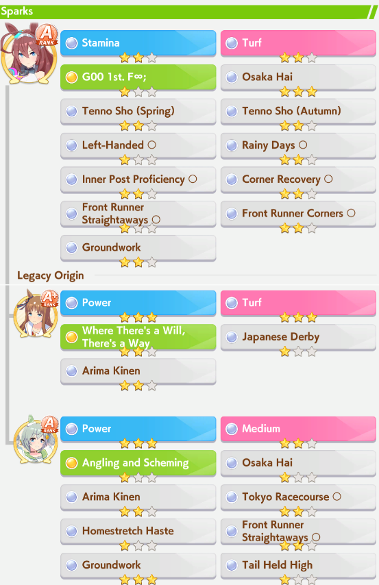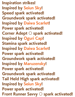 >>542707223some give stats, others give skills. having the same race sparks on both parents rise affinity i think, or it's having both parents run the same race idk