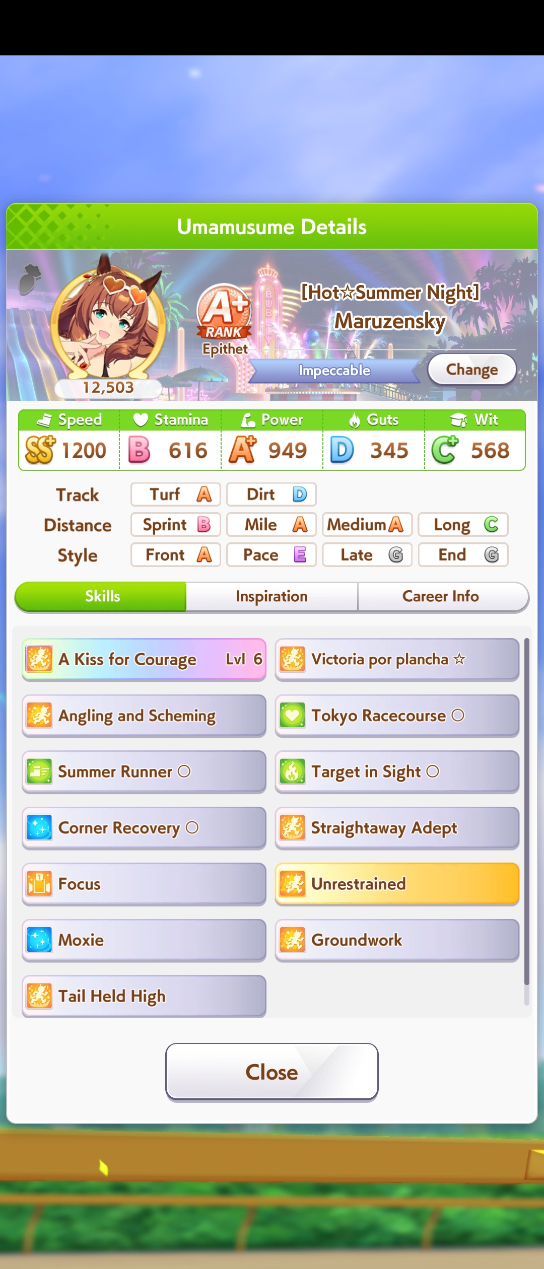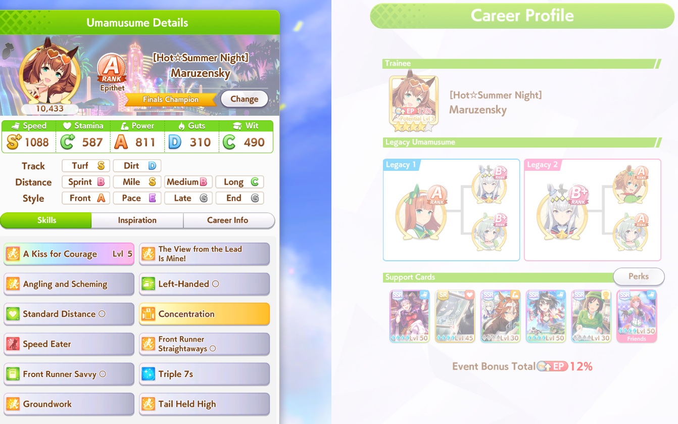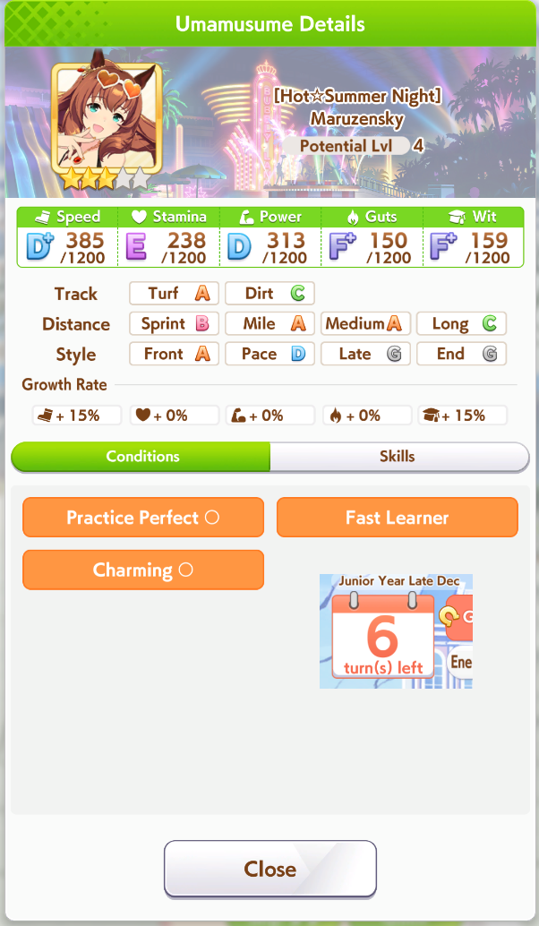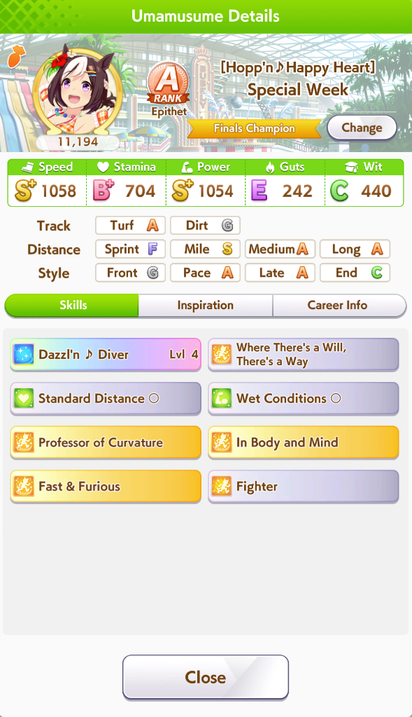 What makes summer spechan decent? The recovery is nice so you can train a bit less stamina, and she comes with some okay gold skills, but she seems a mostly average late surger?