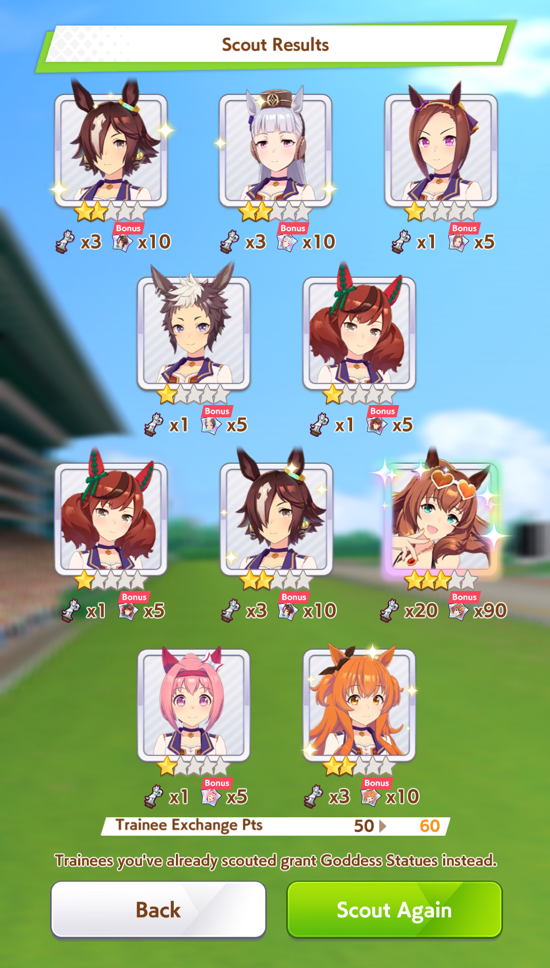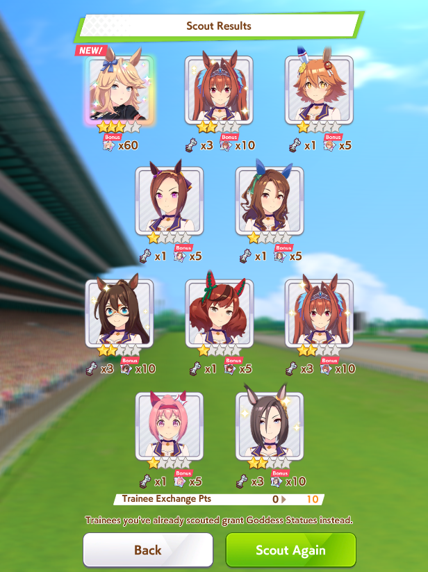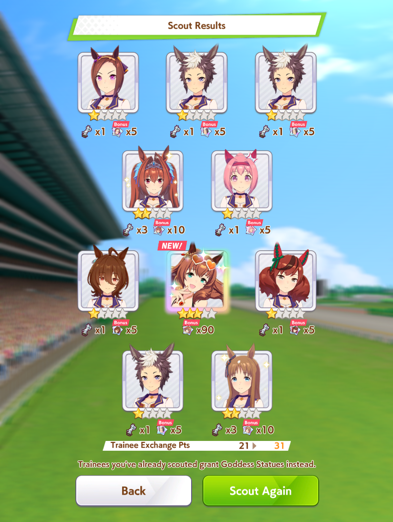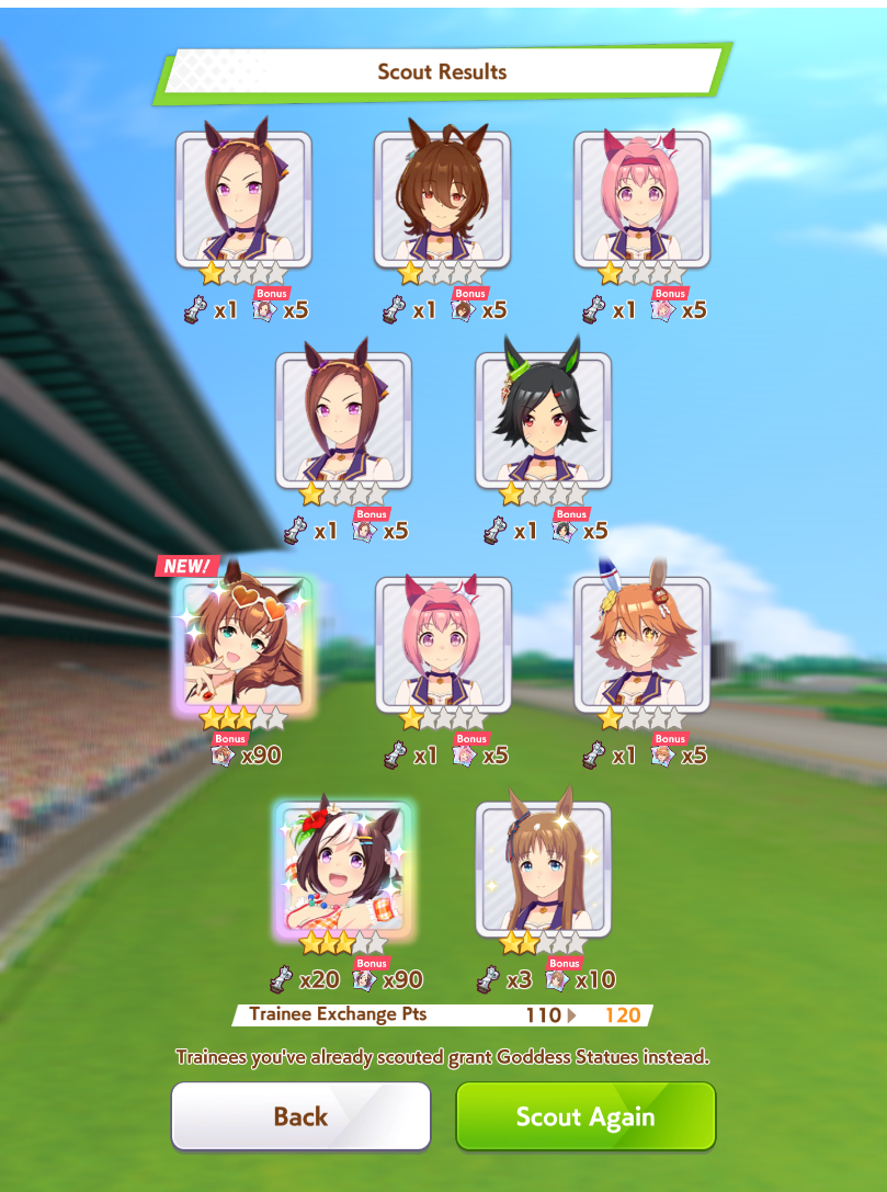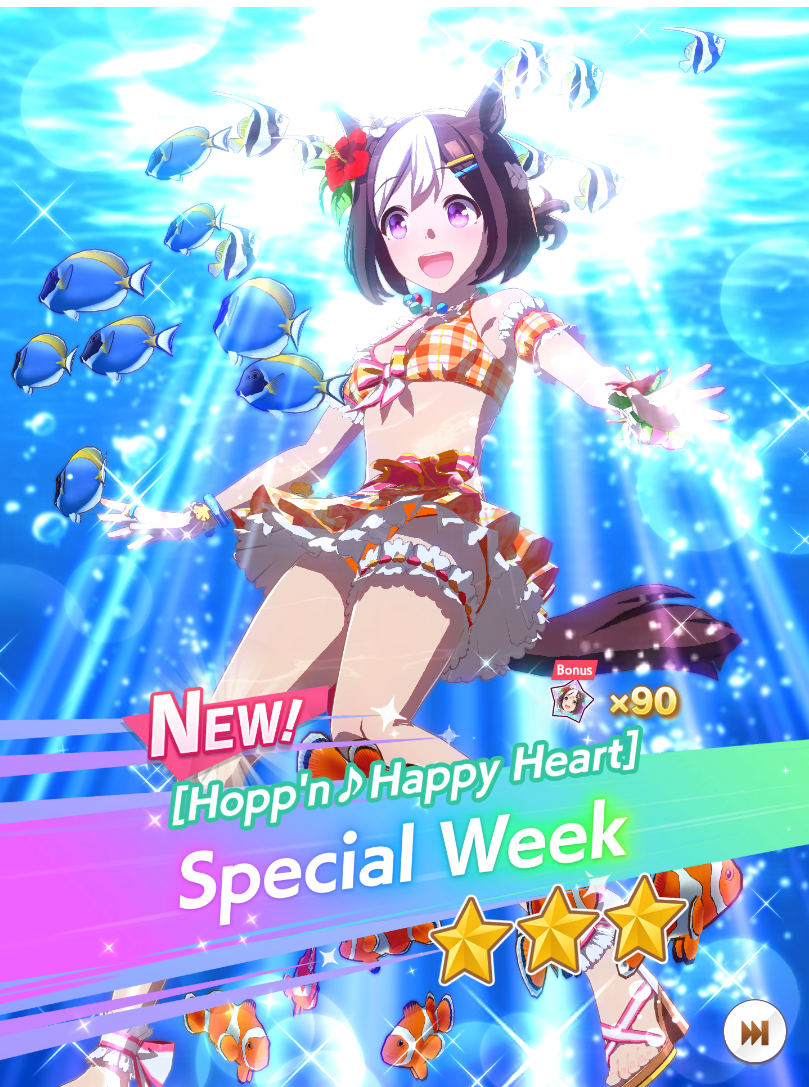 I had to pity to get Special week.On the good side I 5* my first uma.Chikezo!It was a close race between Ticket Ryan and Matikanefukukitaru.
