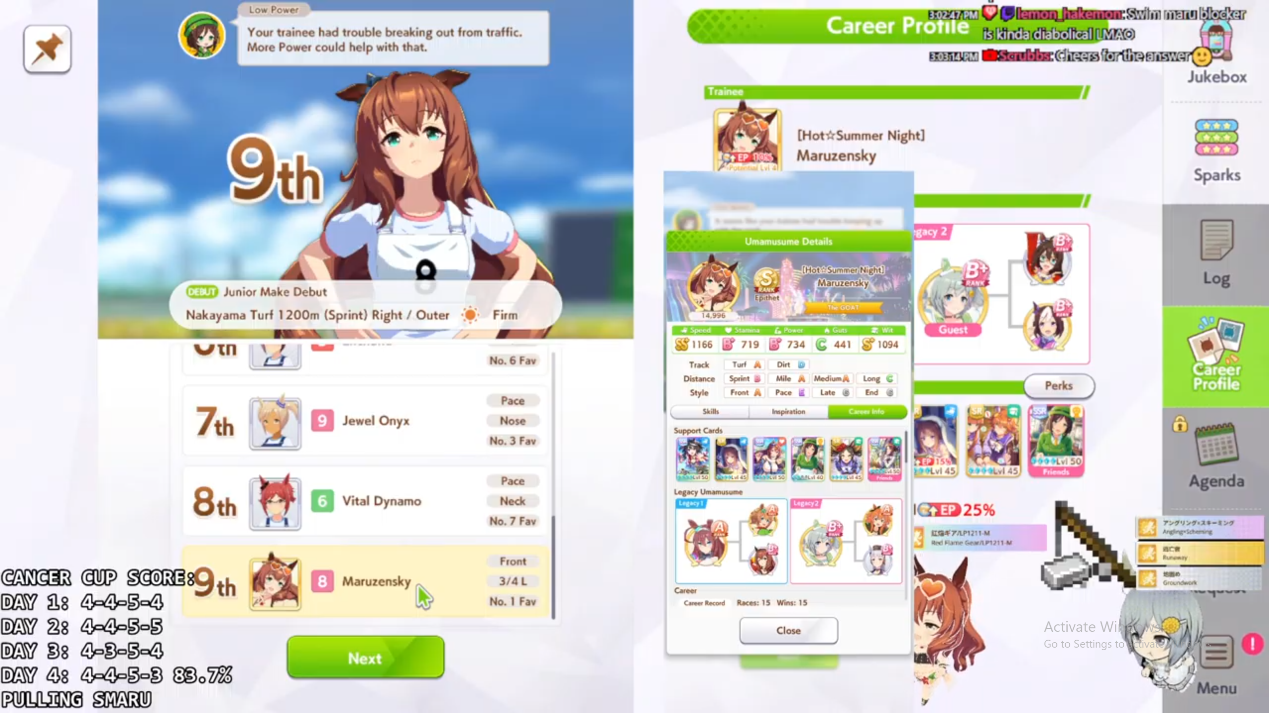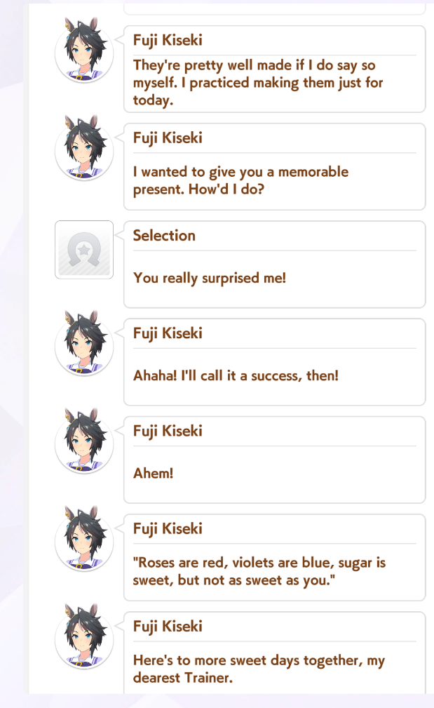 >>542706692Think playing Aoi over Diamond is far more reasonable since Aoi gives you guaranteed hesitant end at the end of the run and force feeds you SP on dates so you don't need to race as much, but I felt like chasing flustered front (which then became the one thing I didn't actually hit).