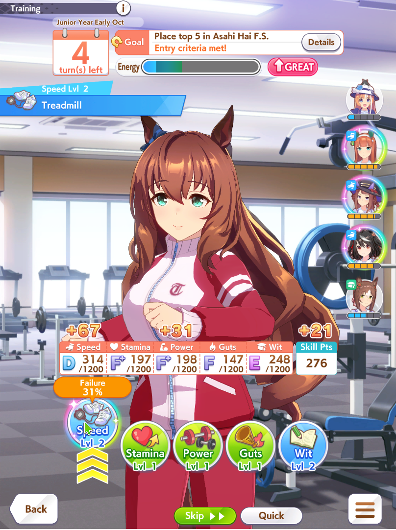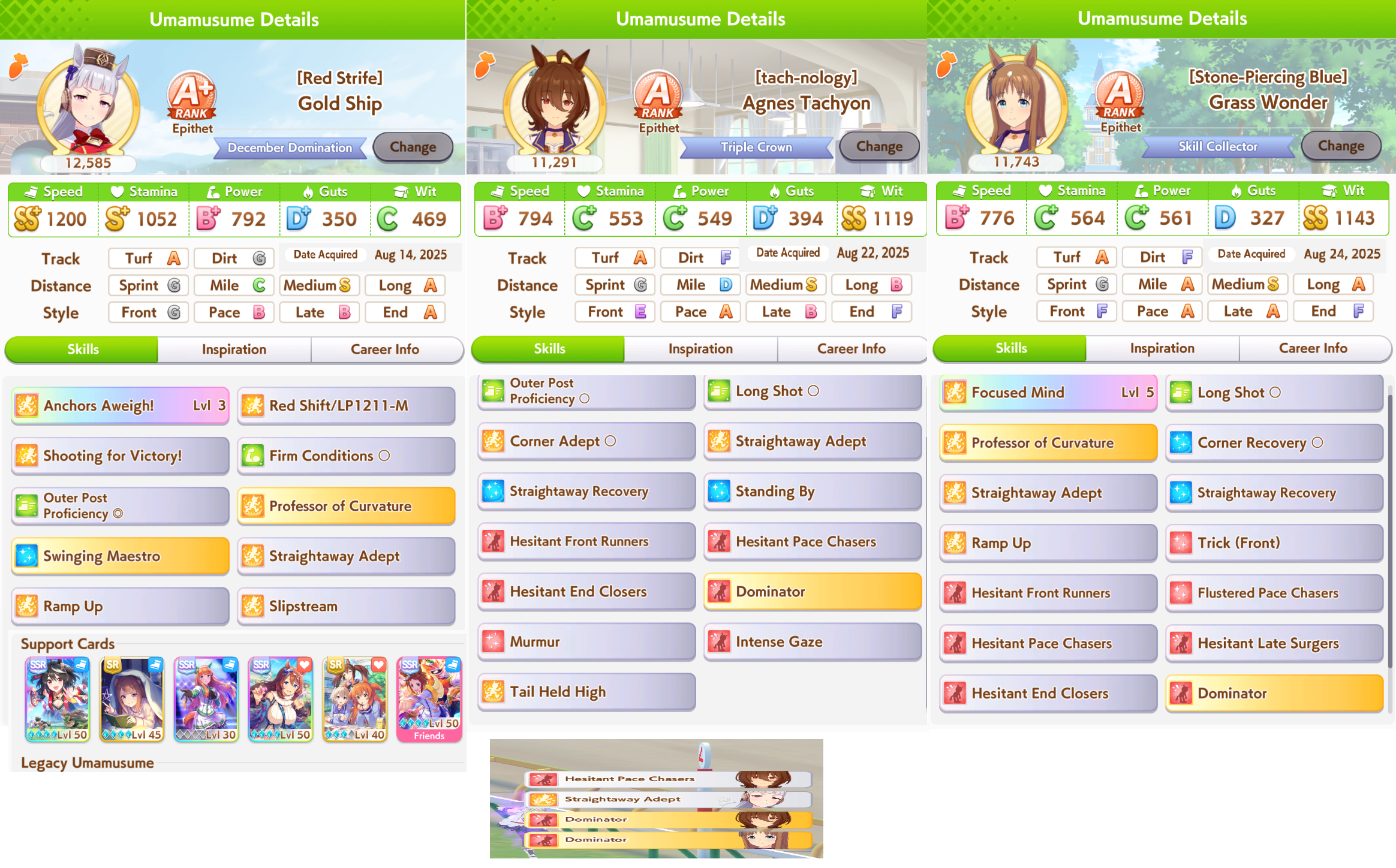 >>542721115You want one horse for each style if you're minmaxing TT, otherwise 2 pace chasers will fight over positioning scores.