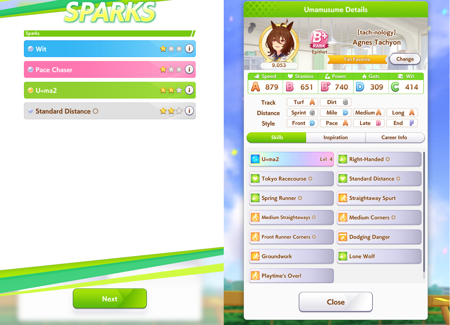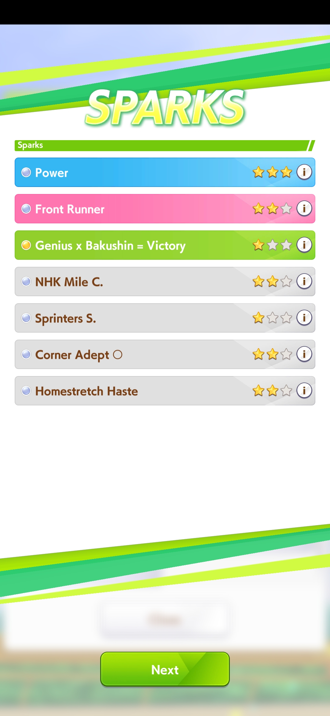>>542707223some give stats, others give skills. having the same race sparks on both parents rise affinity i think, or it's having both parents run the same race idk