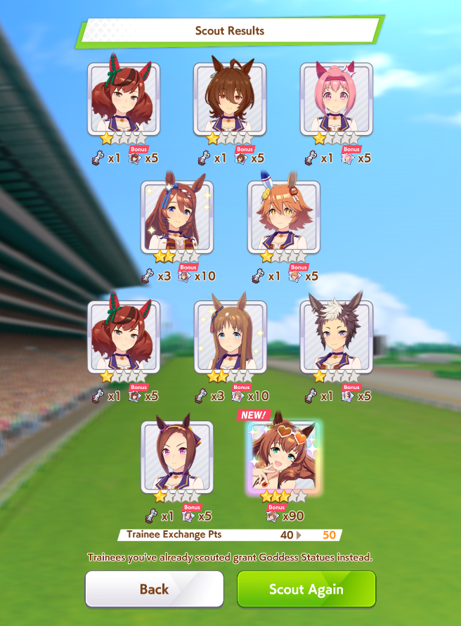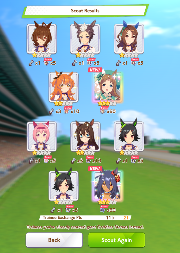 I had to pity to get Special week.On the good side I 5* my first uma.Chikezo!It was a close race between Ticket Ryan and Matikanefukukitaru.