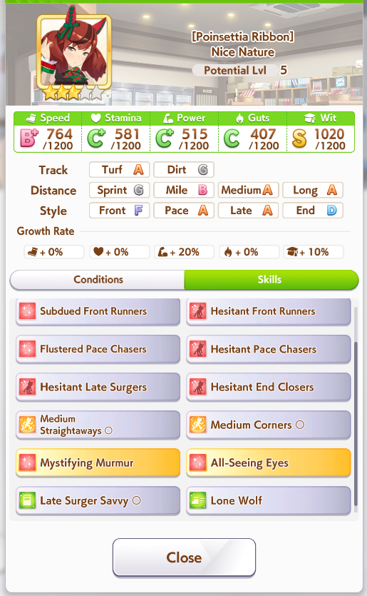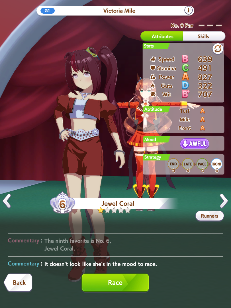 >>542721501Midrace skills doesn't feel too important for medium, compared to mile at least.