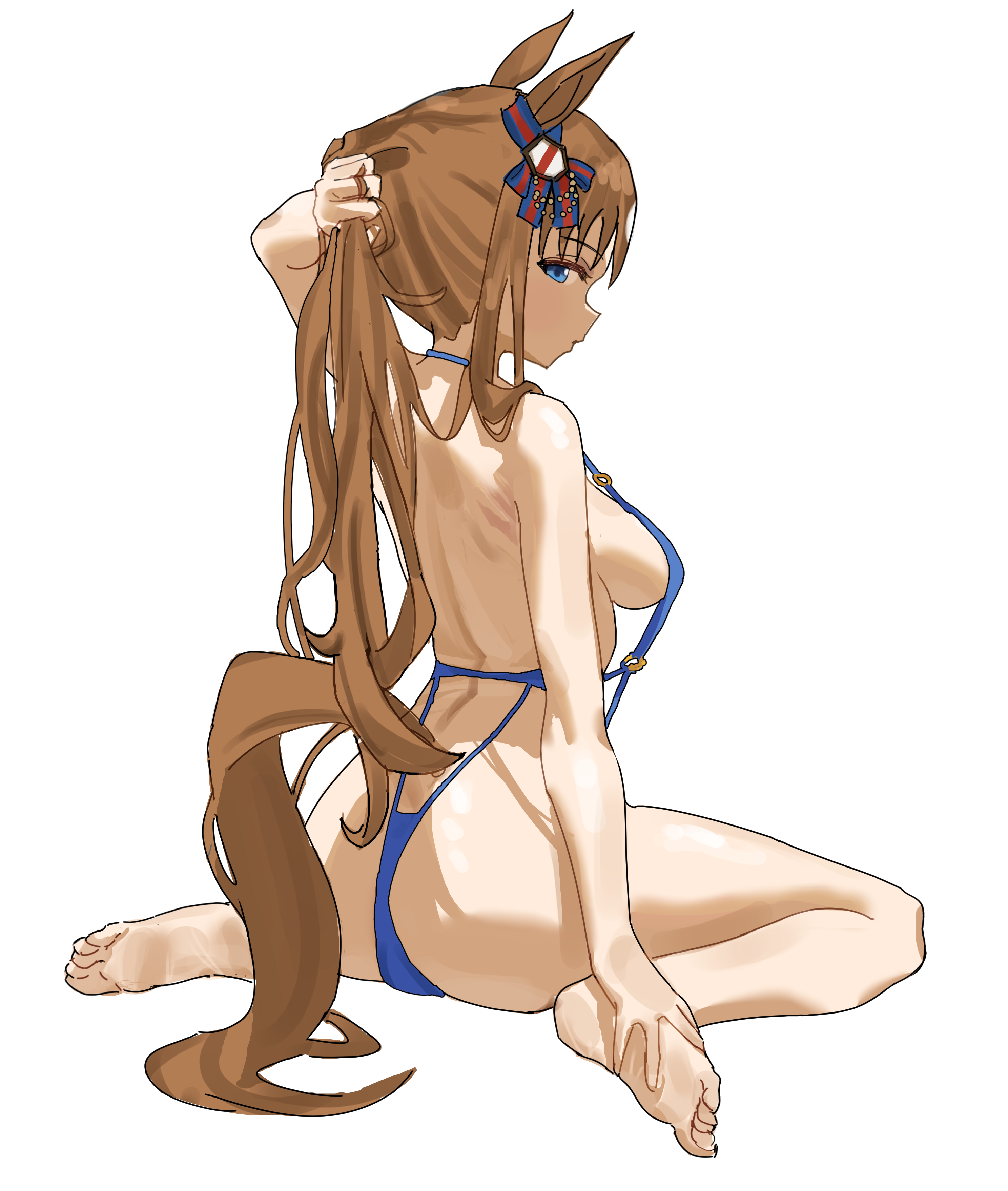 sniffing Grass Wonder's big sweaty butt that can't fit into her bloomerssniffing Tazuna's large sweet smelling butt as she settles in at Tracen