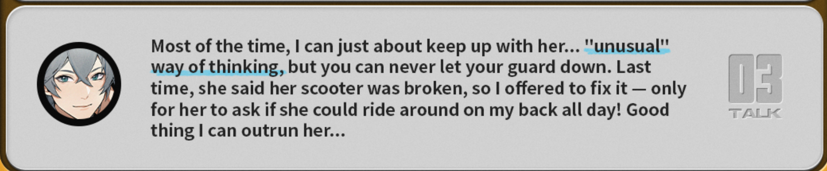>I should read what character does