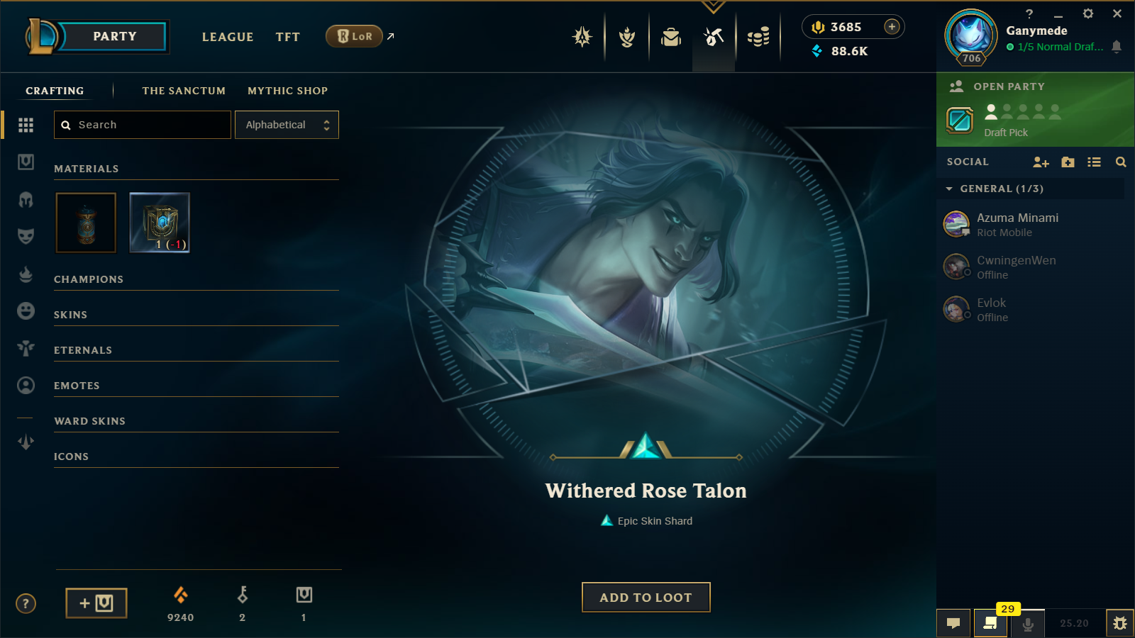 >>542847539I dont think icons are shards, they just get added directly to your profile. Same with Emotes. Only champ skins or ward skins can be disenchanted
