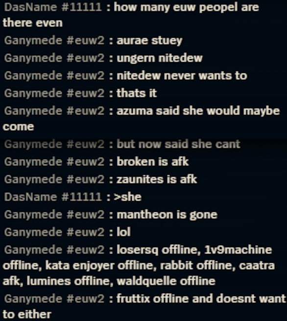 >>542845483Yep, mainly the discord agp troons as always.Most anons here are okay though, just stay away from every single person that only plays female champs and has aheago ahri summoner icons