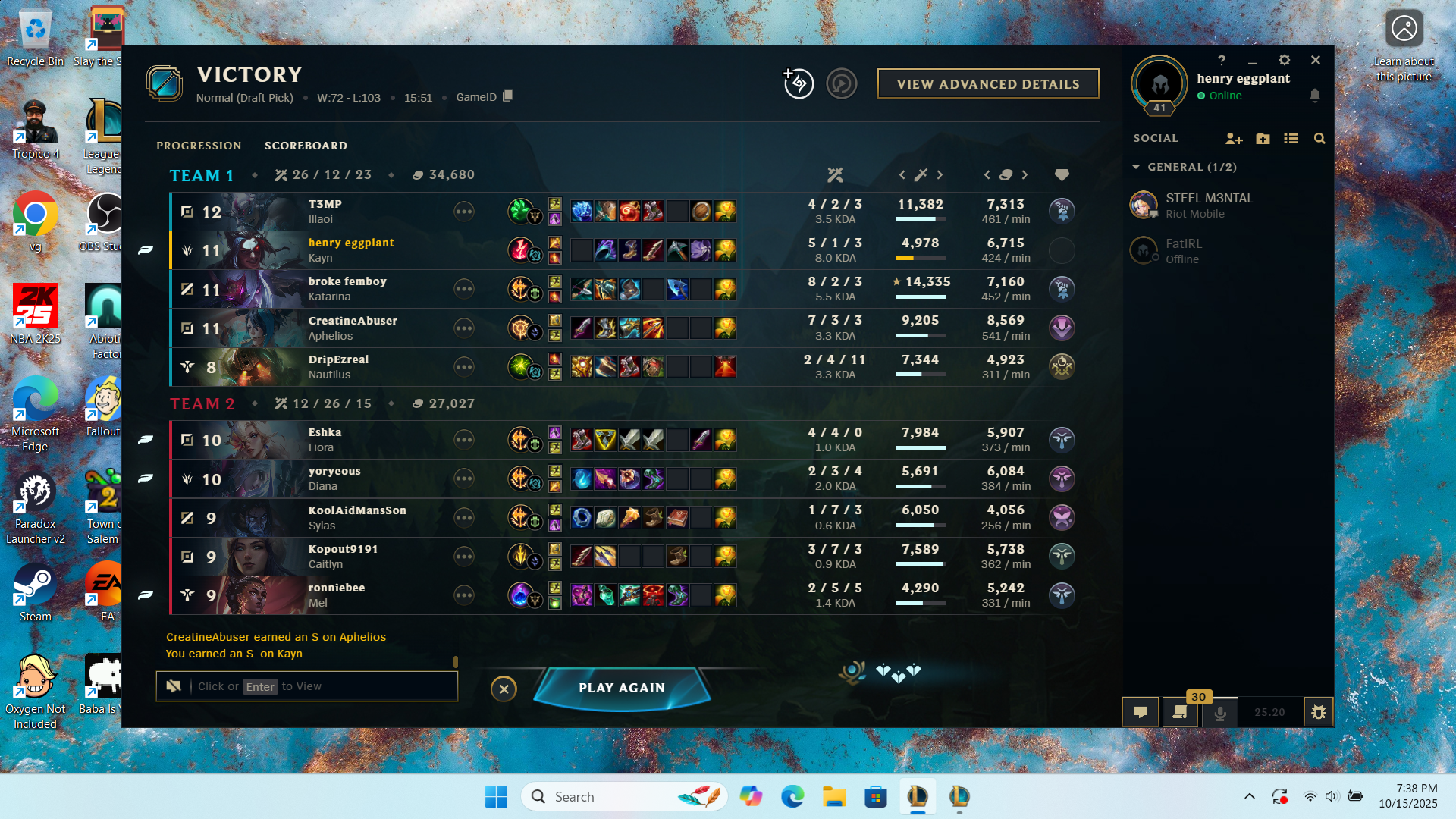 Previous: >>542688189NA Edition>Official Wiki, Patch Notes and PBEhttps://wiki.leagueoflegends.com/en-us/>Builds/Account Statshttps://u.gg/https://www.op.gg/https://lolalytics.com/>Model Viewerhttps://www.modelviewer.lol/lolg/ OP pastebinhttps://pastebin.com/8xZvBfnZ