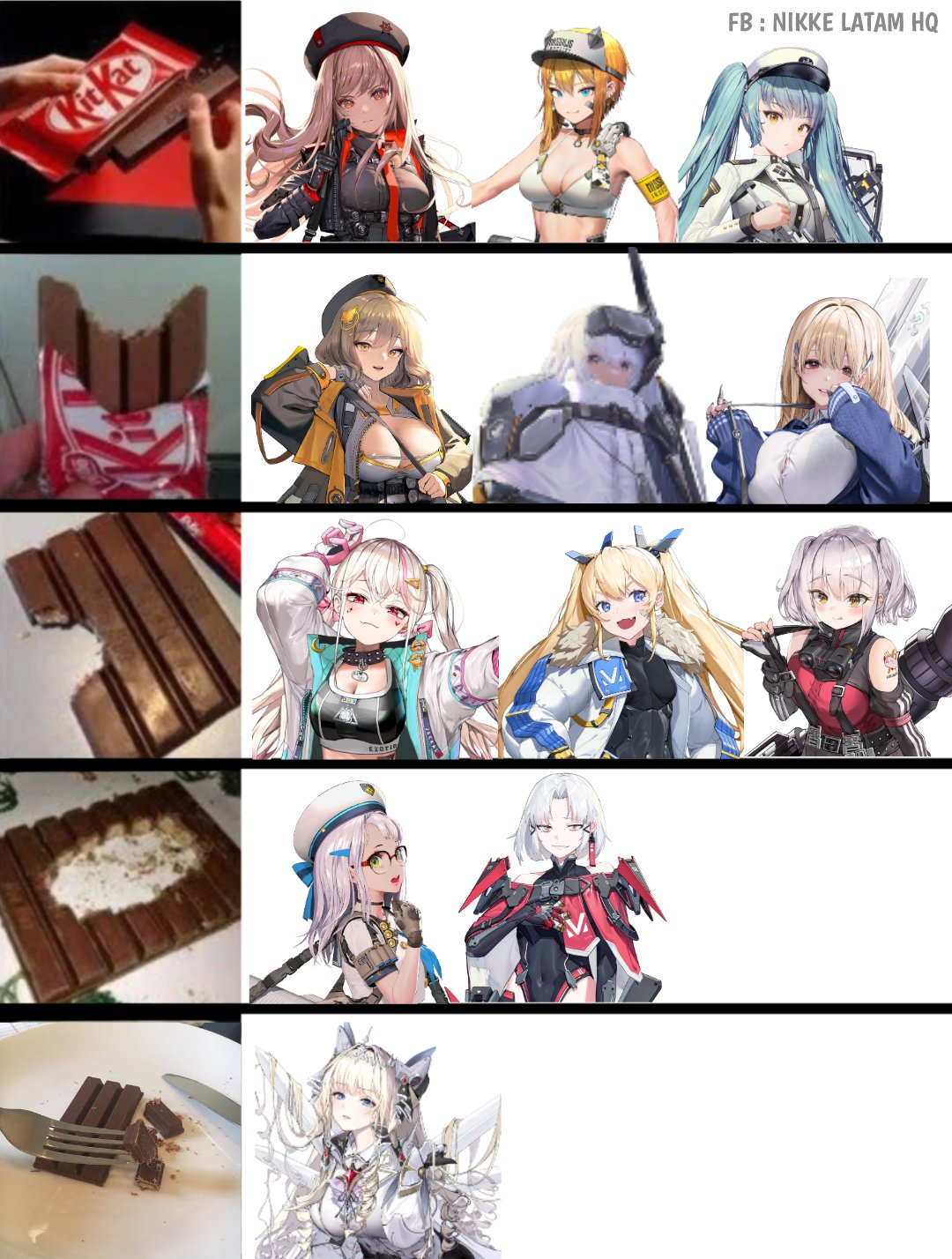 I bite the outer chocolate shell to separate it first and eat that, then I separate each internal wafer layer and eat those one by one. Which nikke does that?