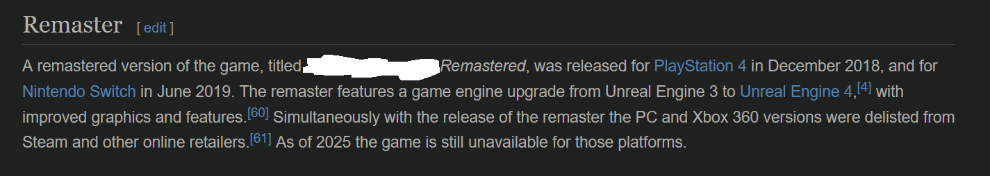 >>543122617I thing Anon lamented that not only that remaster didn't get a PC release, but, that the old PC release still get erased.