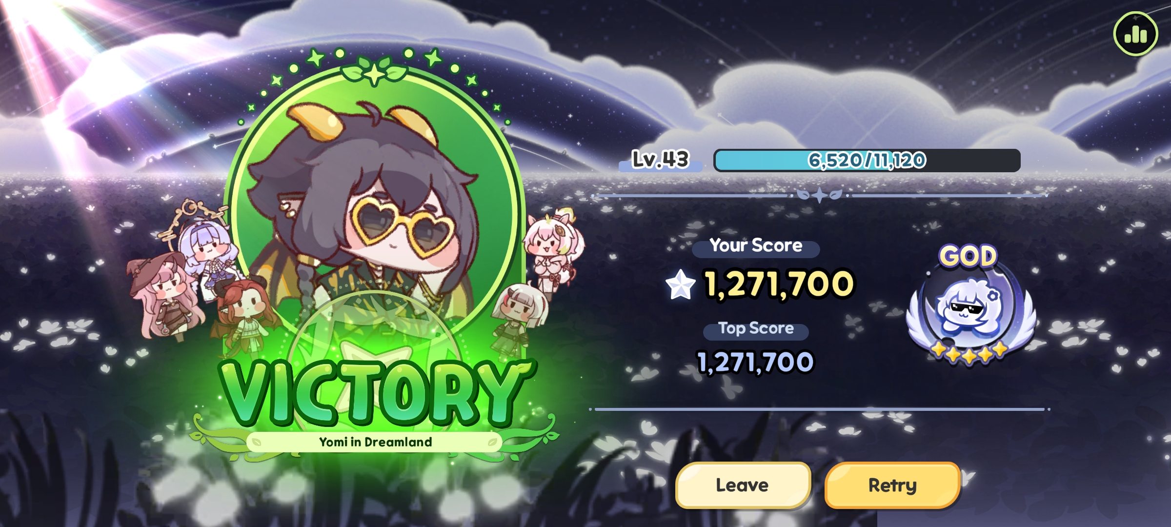momo is insane for this, you don't even need a frontlinerudd and rufo were dead most of the time and I still got 1.3M pointsjust make sure to never use momo's senior skill because she will kill herself