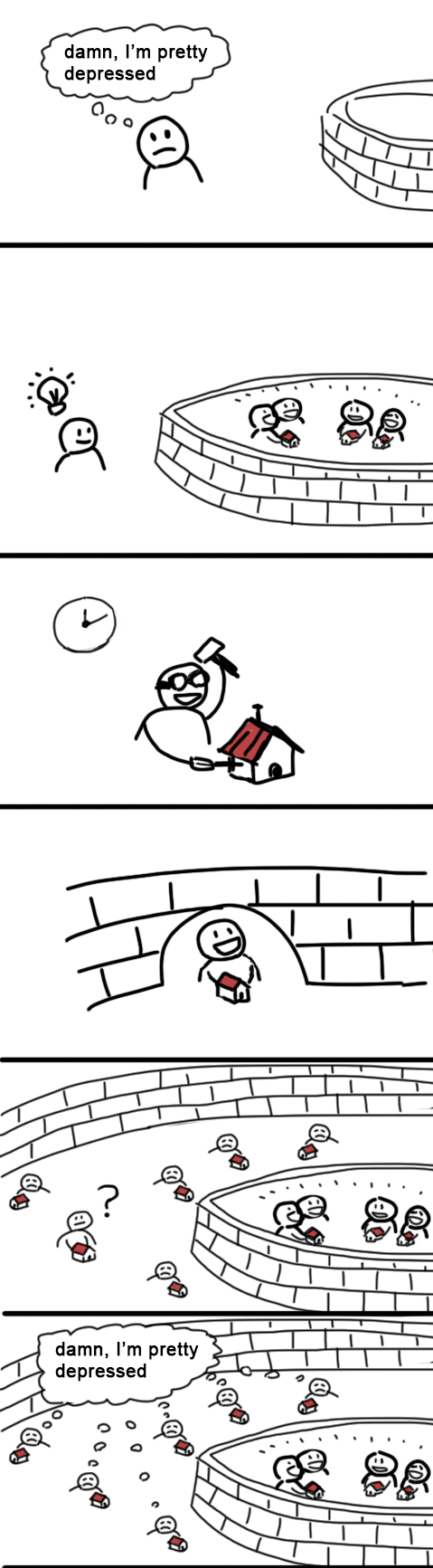 the best game to make is a game you know you can finishi think ideally something that you can extend with dlcs. like a story where each chapter is a product being sold.i want my projects to be designed in a way that doesn't torture me and my body.depression is when you create hell for yourself and suffer from being stuck in it.