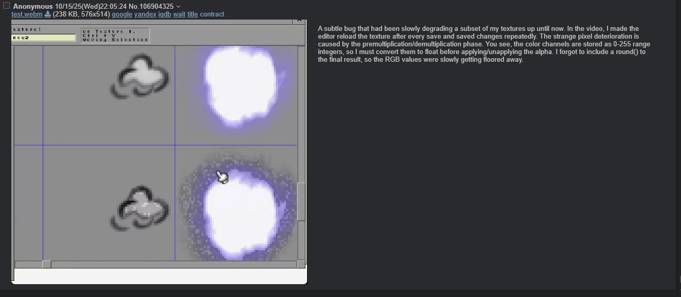 >>542873394Massive pseud post to cope with being upset that the guy is learning.>>542872939Good luck on the next one. This anon >>542873416 has good advice, 256fes is supposed to be a strict challenge, not great for making assets
