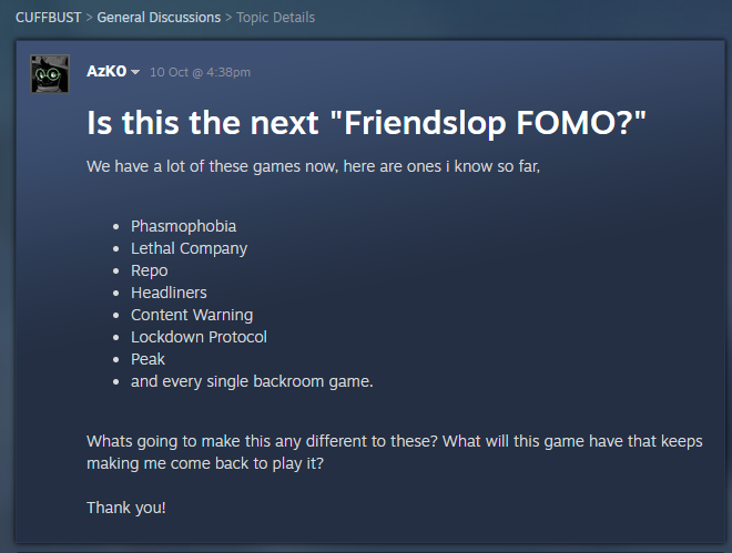 >The developers describe how their game uses AI Generated Content like this:>Our Approach to AI in Project AGDG>In developing Project AGDG, we used generative AI as a creative tool to help us explore new ideas for music, art, store page assets, and code. We consider AI a partner in our creative process. It helped generate a wide range of concepts and assets, but every single element you see, hear, and experience in the game was deliberately chosen, edited, and finished by our talented team of human developers. This collaborative approach allows us to take more risks, move faster, and make more things the community wants. We are creating this game with the essential human touch that gives the game its heart and soul.