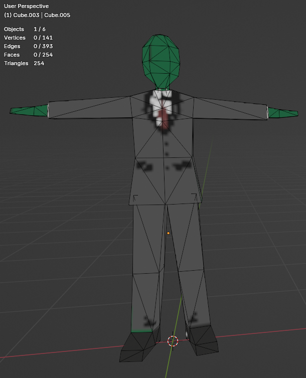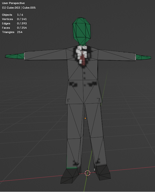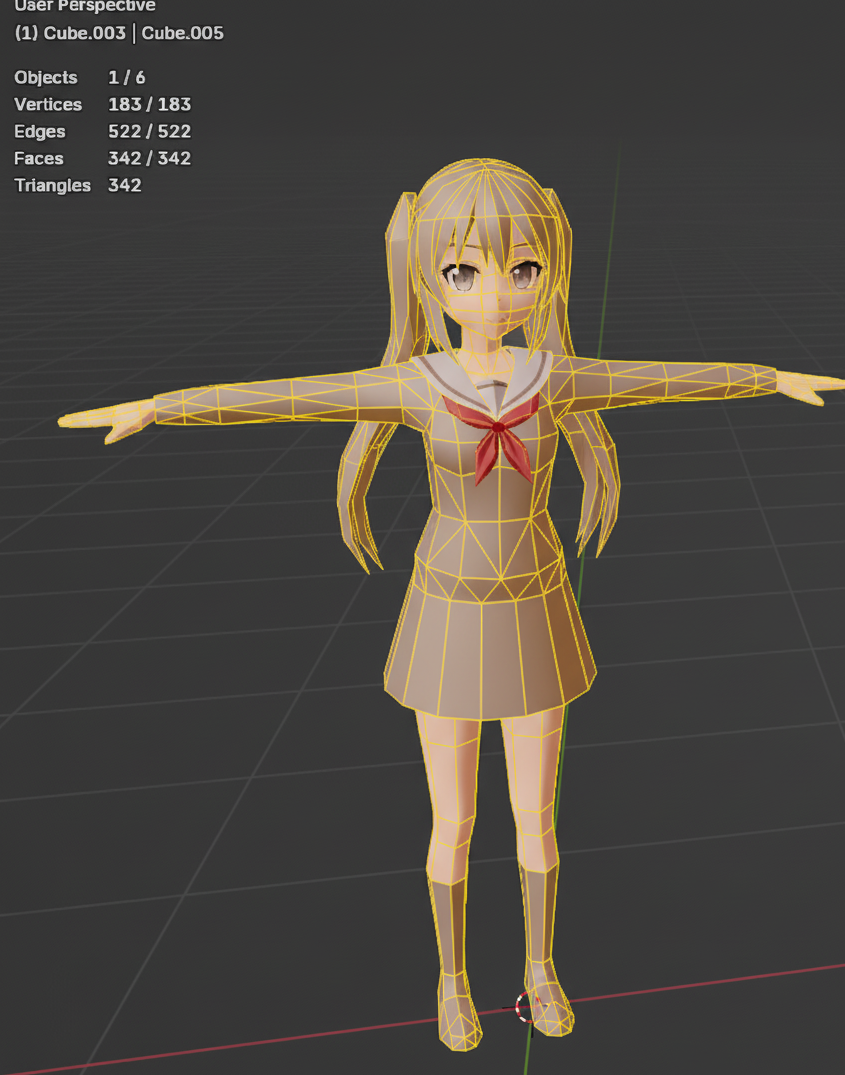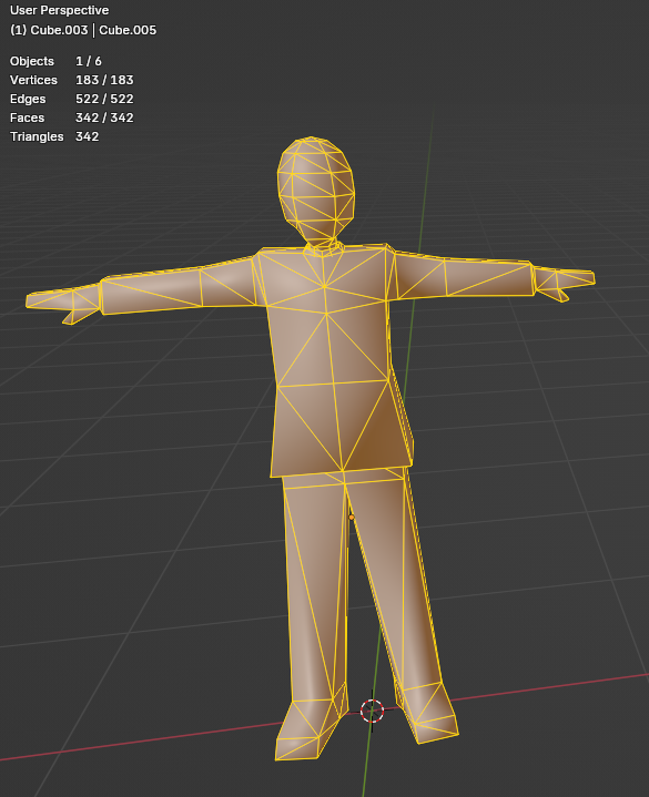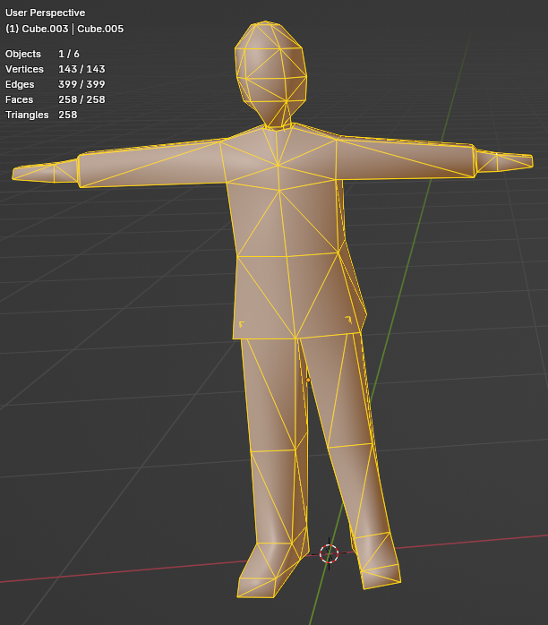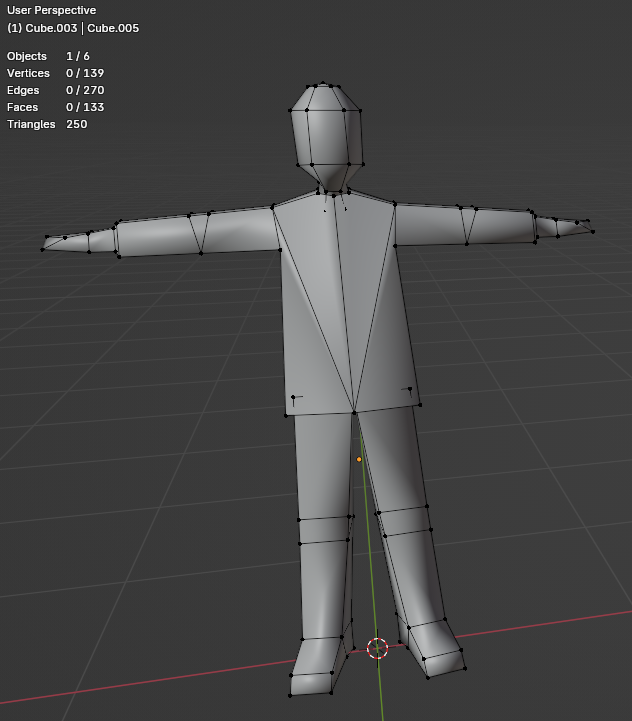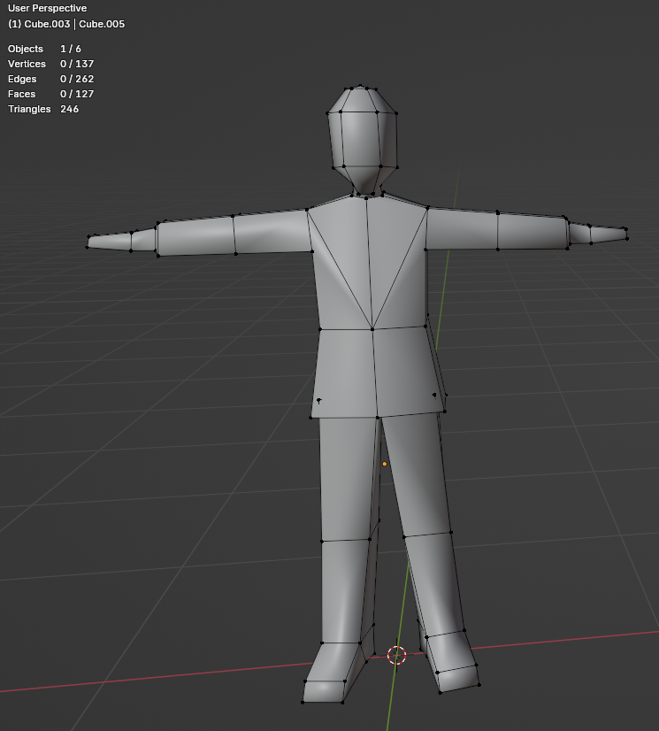 >>542871125You are not yet finished. The geometry of your elbows and knees is poor, and your budget allows you to fix it.At the moment, those joints will not deform they will collapse.Since you are making the anon character you have nothing else to add here, there's no reason to leave the model in an unworkable state.