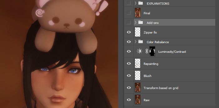 >>542857391the rule of thumb for blush in terms of actual theory is to use a high saturation red or pink to mimic the blood rushing and showing through the skin, Multiply (and Color Burn in some edge cases depending on the base color under it) does most of the jobFacepaint mods (iirc I use this one https://www.xivmodarchive.com/modid/139720) also do a good job sometimes but they're more dependant on gpose lights so you have less control overall
