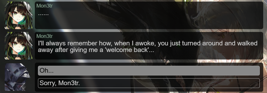 >>542826082Genuinely I think they just changed their direction for Mon3tr's design/Kal's fate between original Endfield trailers and ch15. This is obviously not Mon3tr and if we bring Kal back but she's an entirely different person like this then there was no point to even do it.