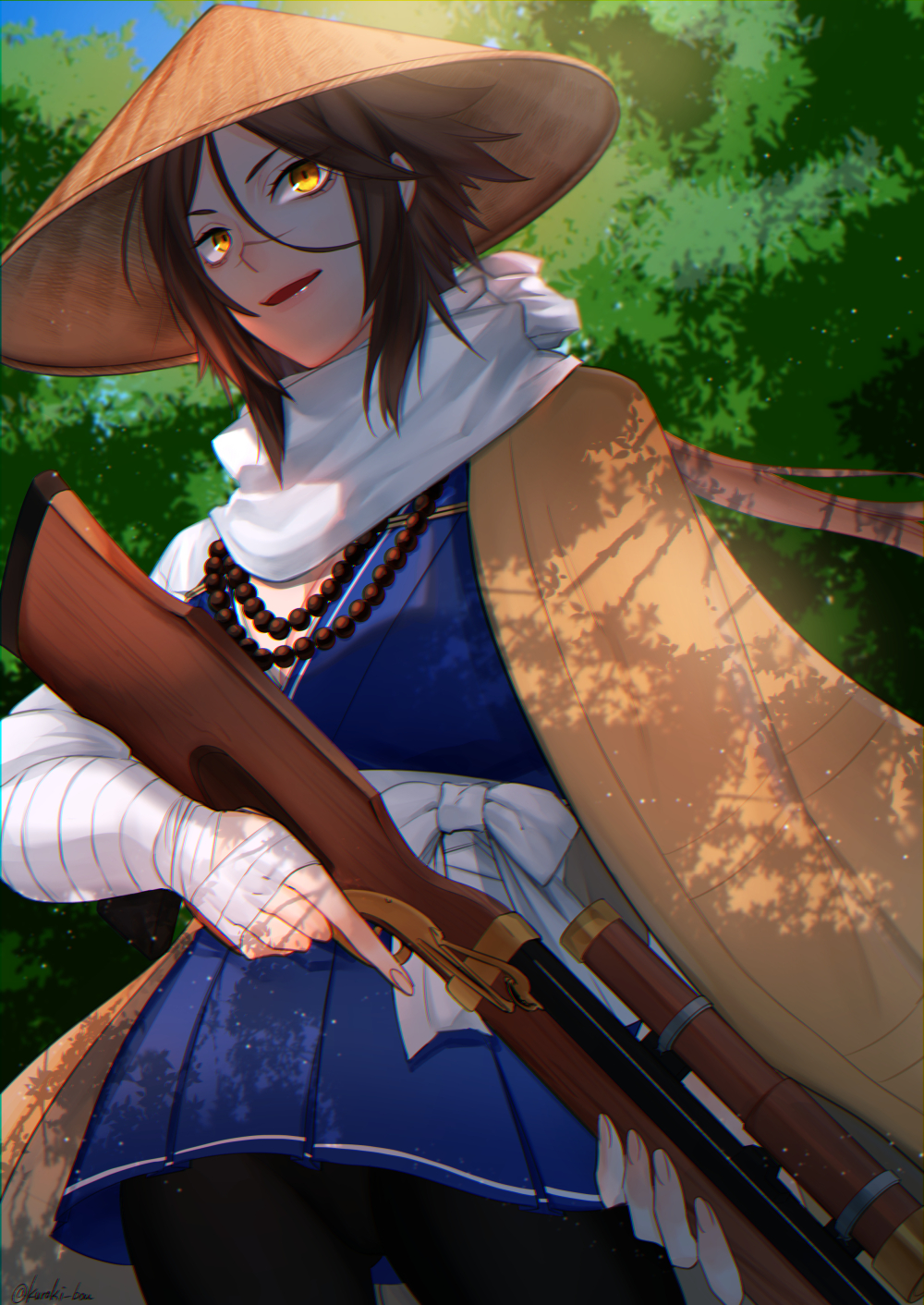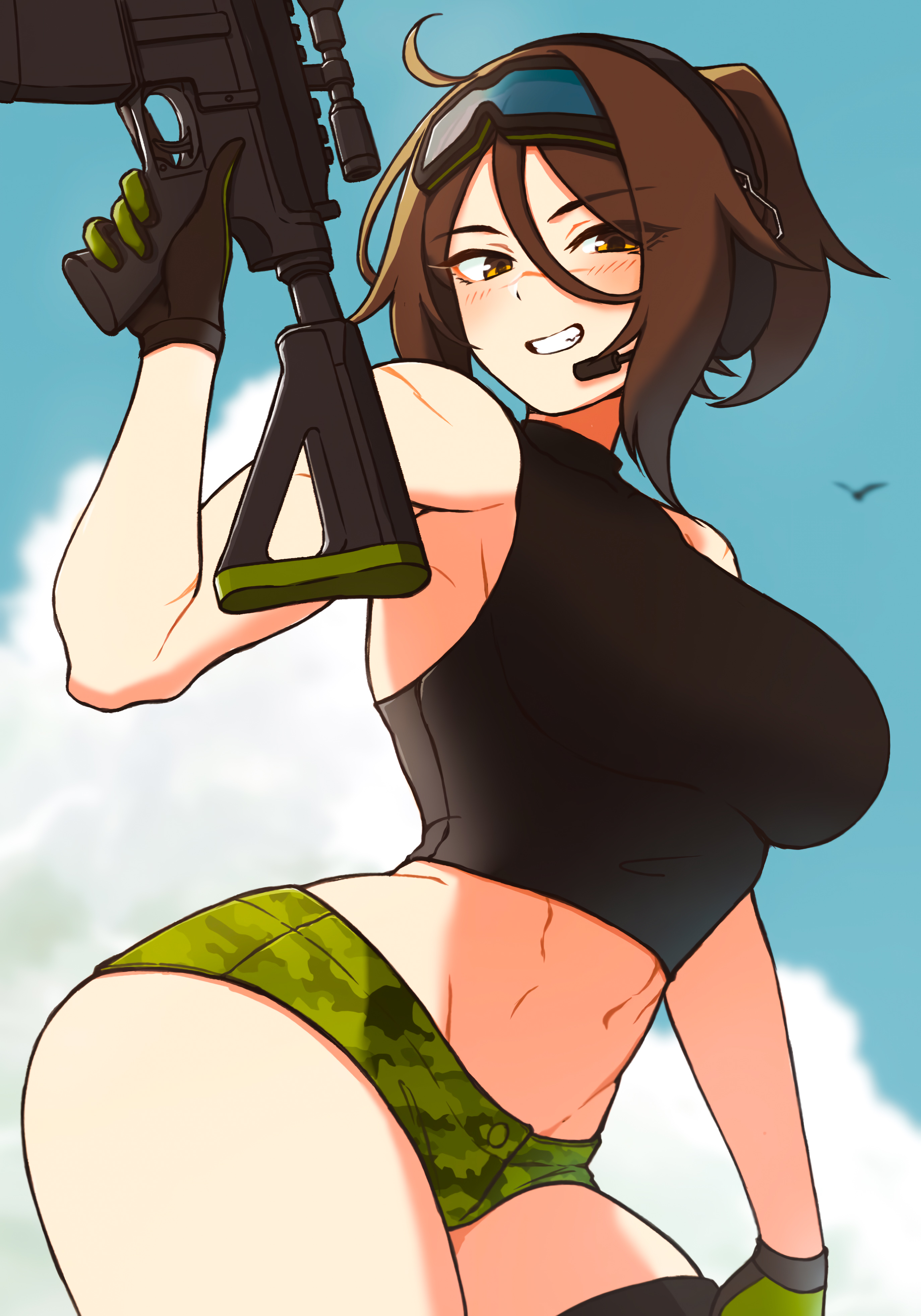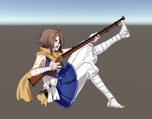 she props her rifle up against her toes