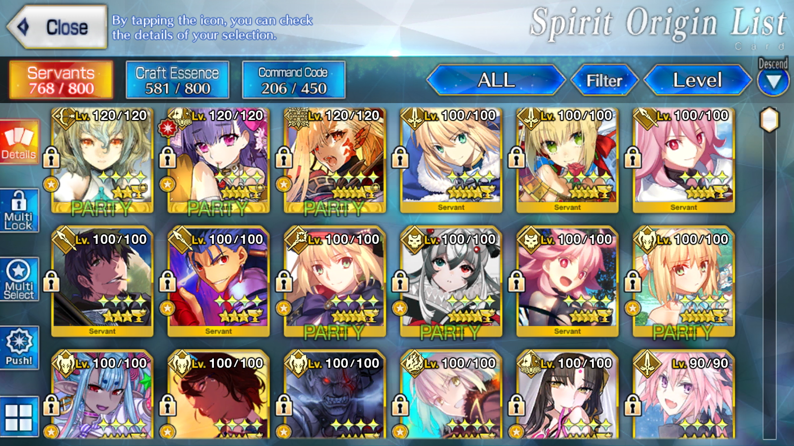 >>542948923Oh tickets is definitely your number one priority for summons, with golden fous, fou paws and then silver fous and experience (embers) coming next.Try to always do your weekly missions if you can, as you get a steady trickle of quartz from there too. And a good tip for inventory management, don't forget to lock your low star servants as well, as you get them from FP summons and rolling, same with CE's you wanna keep, so you don't accidentally burn them when managing your inventory.