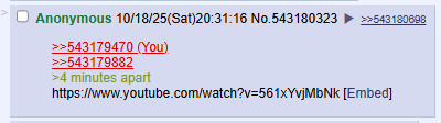 >>543179470>>543179882>4 minutes aparthttps://www.youtube.com/watch?v=561xYvjMbNk
