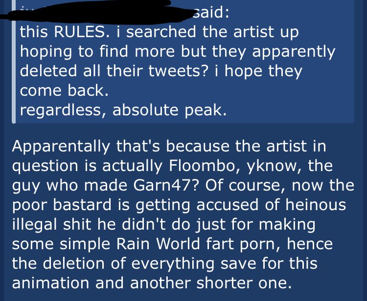 >>543188443floombo (garn47 creator) got outed for drawing slugcat fart fetish porn btw