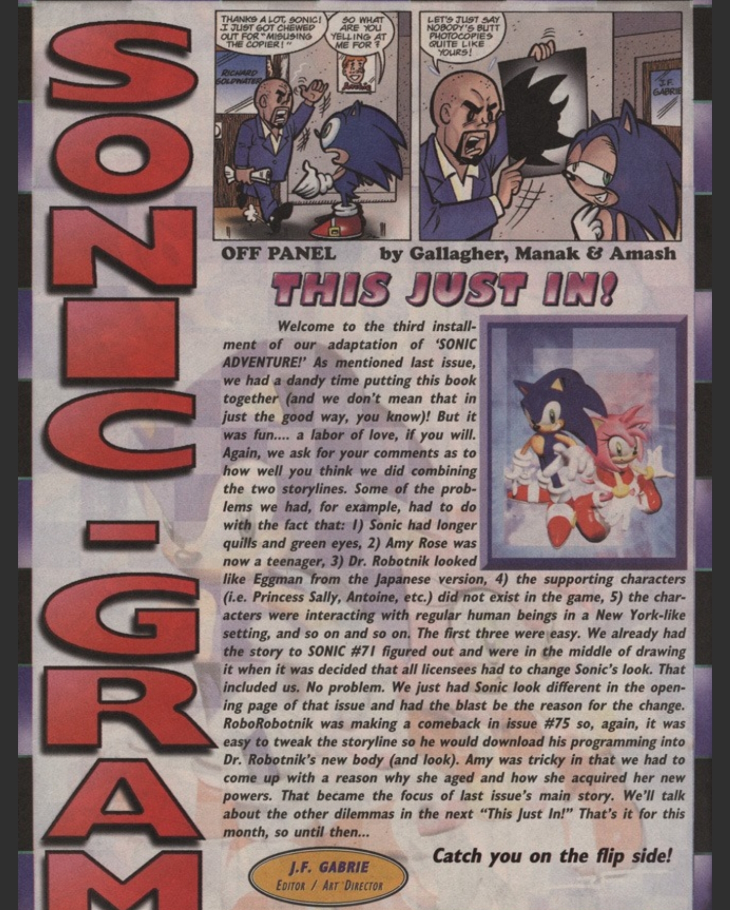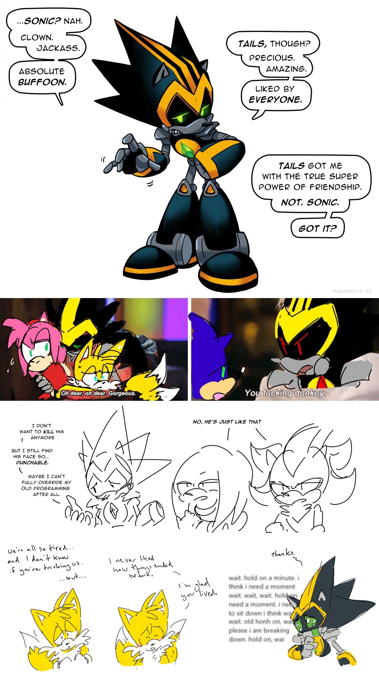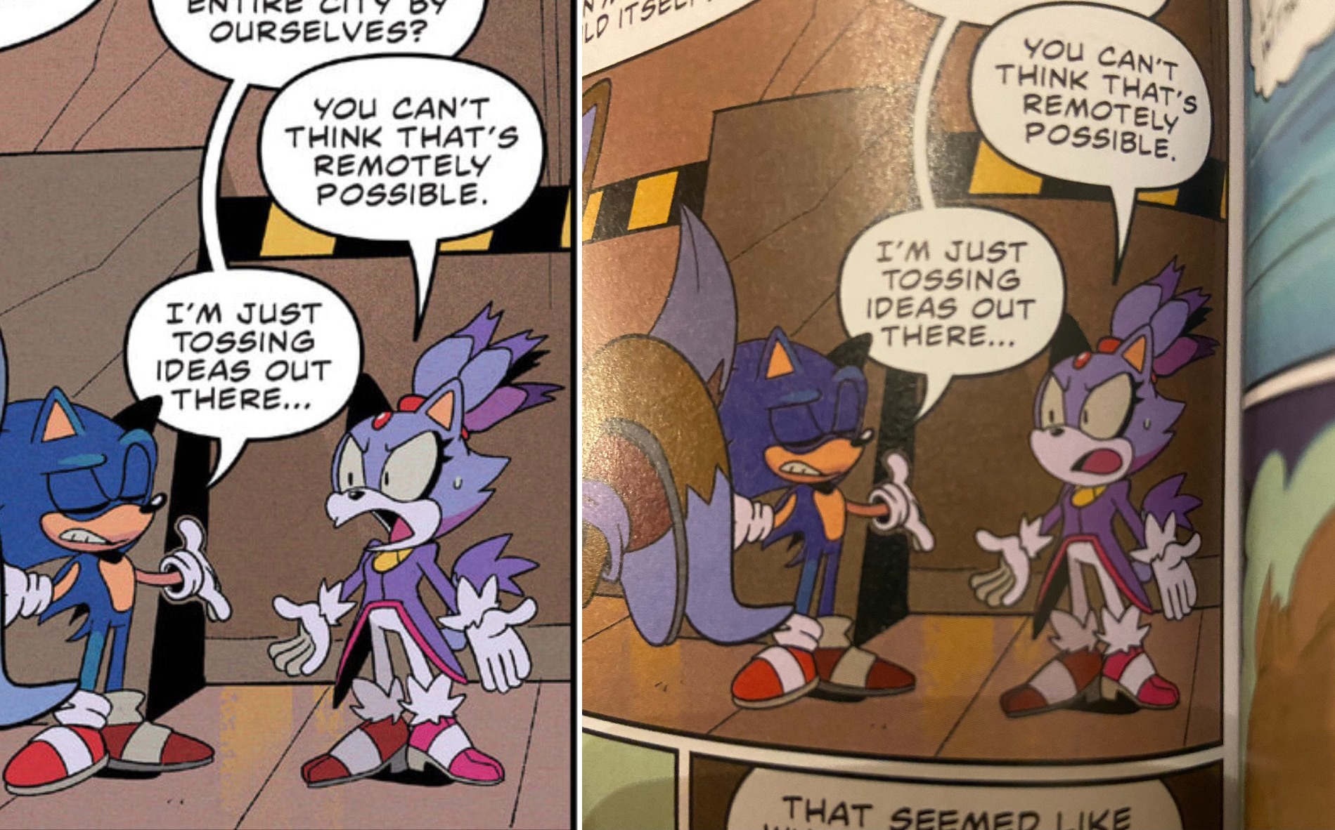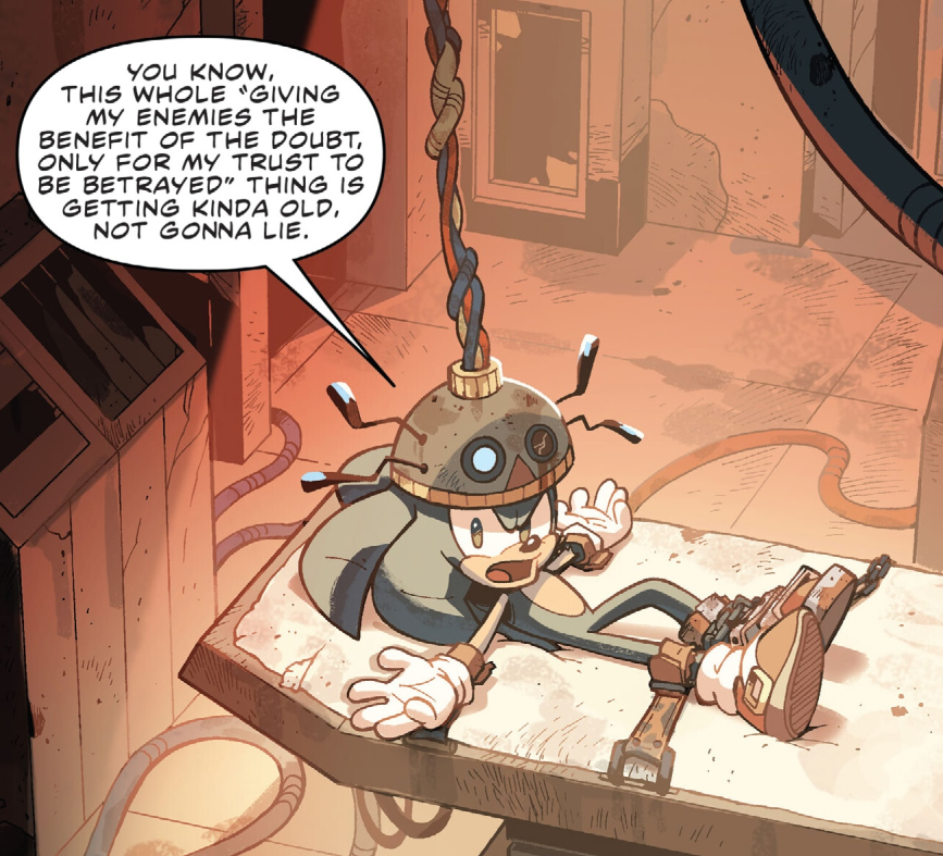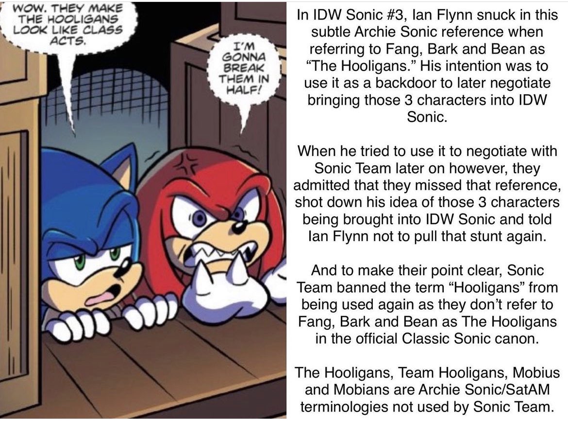 THEORY TIME!Sega of Japan/Sonic Team does not care about the story beyond the outline. There is little if any quality control on the actual scripts themselves.My belief in it is just how much they care about the quality control in art. Delaying comics at the last moment because they do not bother reading the script and only notice things being bad when the art shows it being bad.We have seen them demand changes in the art in rereleases this is one example (another is the way Metal Sonic's barrier worked that was mentioned on Evan Stanley's patreon I will show it if necessary).I am genuinely convinced that the scripts may not even be translated into Japanese.
