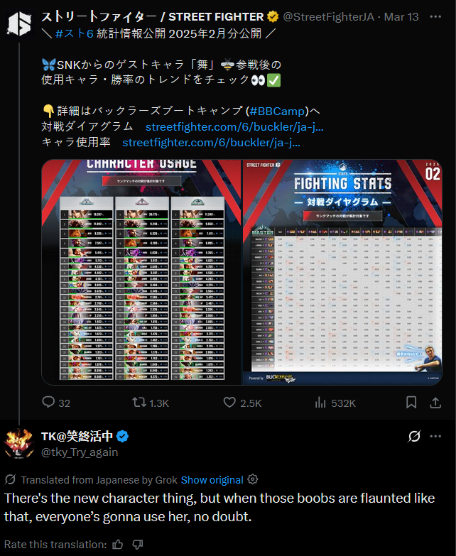 really? i dunno about that, i think other characters like terry and sagat with no low tiger shot got shitposted more.