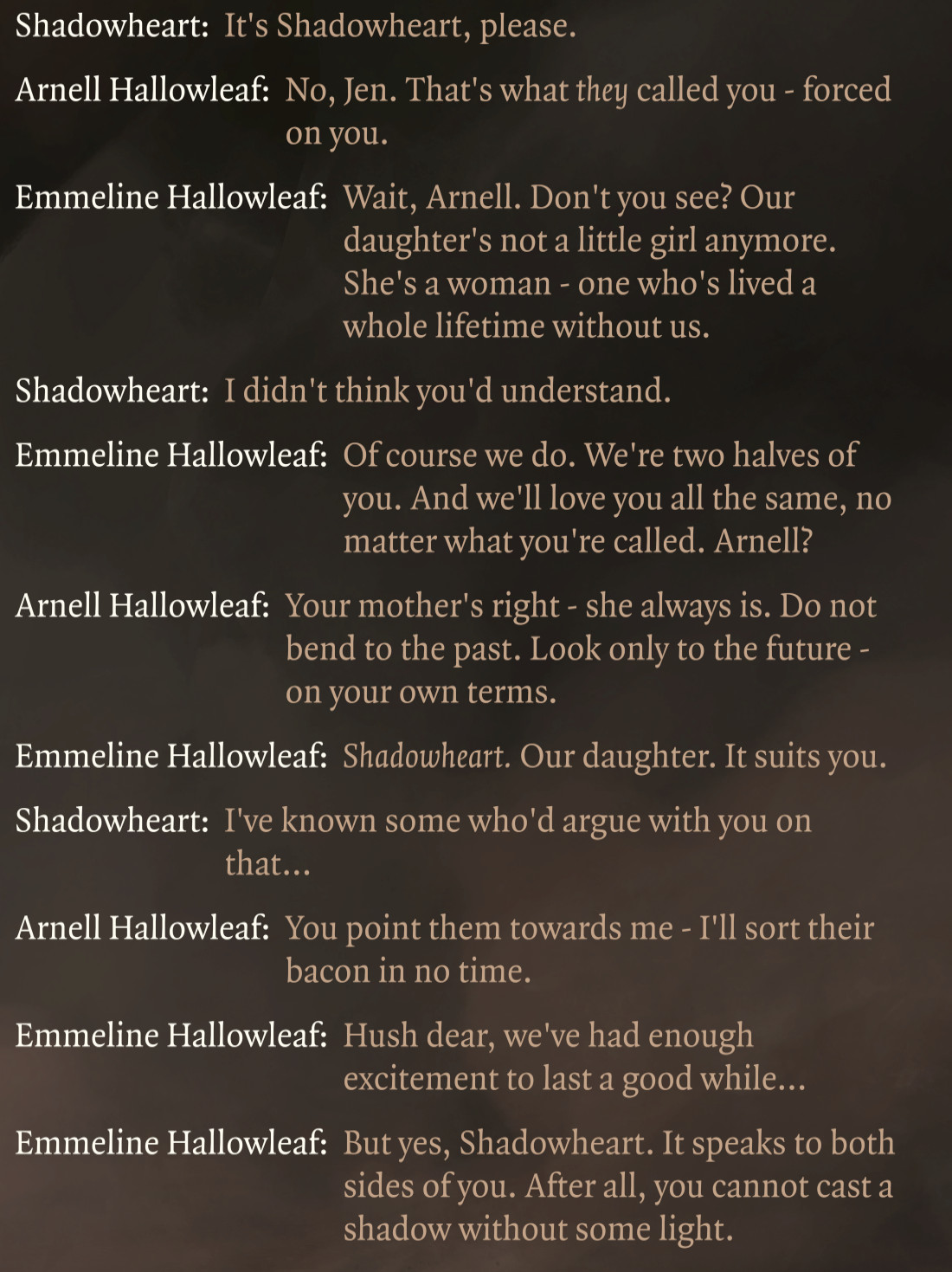 >>543280205>But in every other epilogue, she's still called ShadowheartThat's probably because you personally know her as Shadowheart and that doesn't change even if some others are starting to call her by the other name