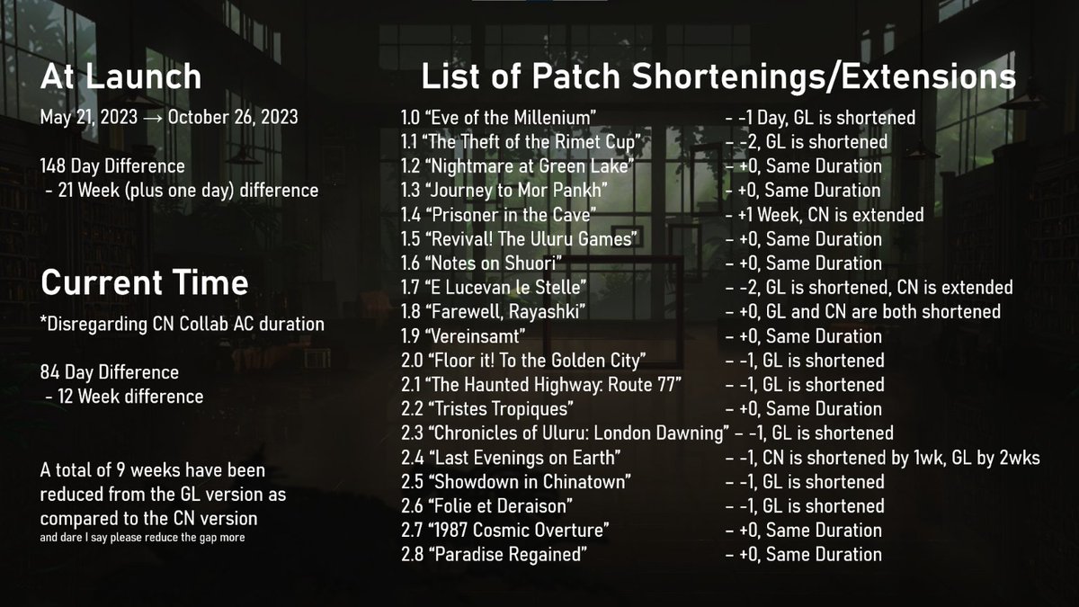 >>542958891>>542956602Sometimes they dont shorten a patch to make a future patch land on a better date. We are catching up